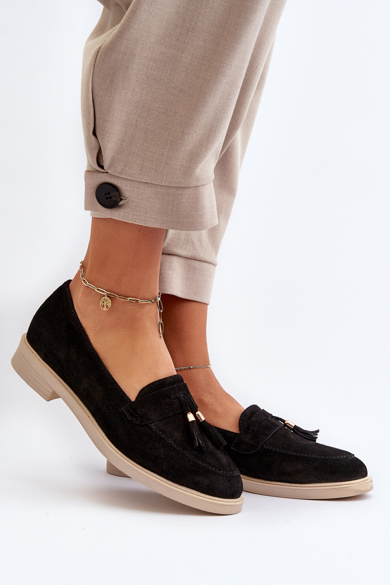 Чорні жіночі замшеві мокасини на плоскій каблуці Zazoo 3420