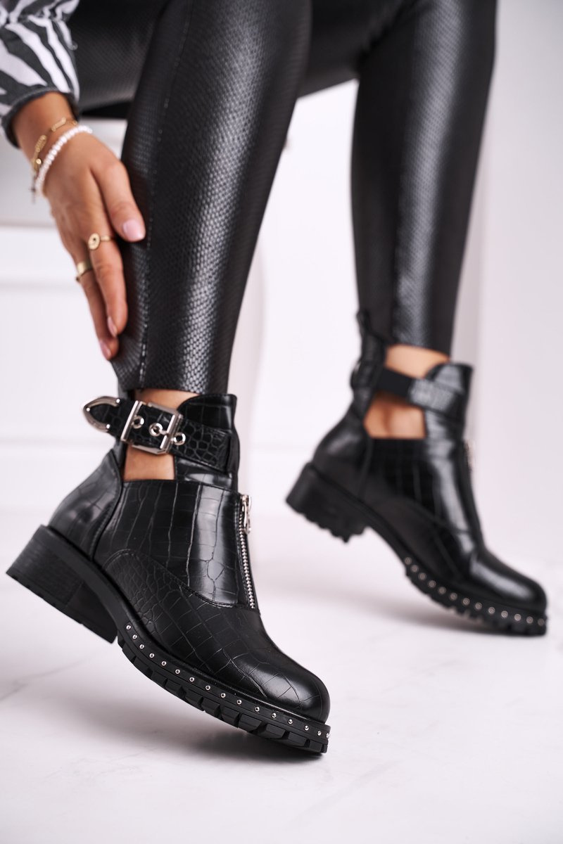 Якщо ви хочете сяяти у світі моди або просто показати себе з найкращого боку, ці черевики стануть для вас ідеальним вибором. Дуже очікуваний багатьма жінками! Вони виглядають дуже ефектно, використання регульованої пряжки збоку та застібки-блискавки спереду верху — це найкращий результат! Верх виготовлений з екологічної шкіри з імітацією шкіри крокодила. Вони мають унікальний дизайн - вони частково вирізані на висоті щиколотки, завдяки чому виглядають неймовірно. Рок-стиль у вас під рукою! Не чекайте більше та купуйте зараз, поки вони ще в наявності! При виборі розміру скористайтеся таблицею розмірів.