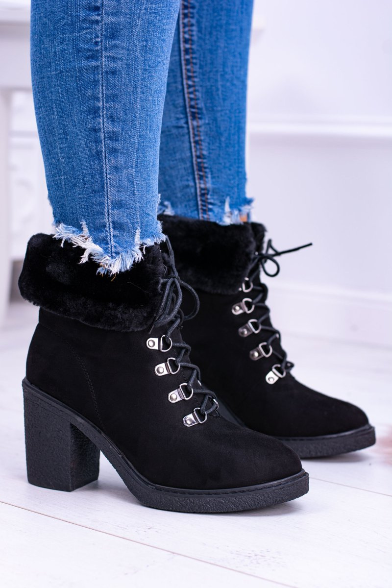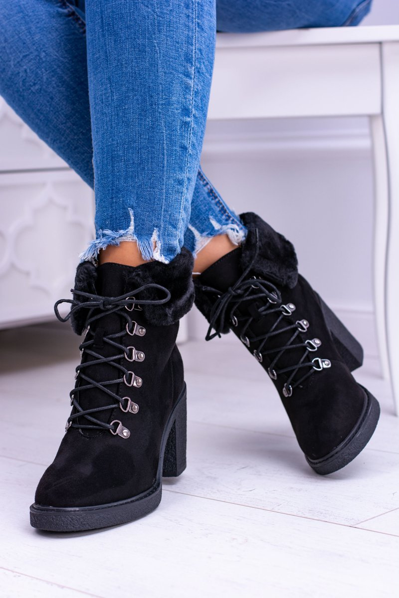 Надзвичайно елегантні жіночі чоботи на пості! Виготовлений з м'якої на дотик еко-замші. Чудово підходить для будь-якого випадку! Внутрішня частина покрита приємним на дотик хутром. Ідеальна посадка на ногу завдяки надійній шнурівці. Поповніть свою колекцію ще до сезону! Перегляньте всі наші черевики зараз!