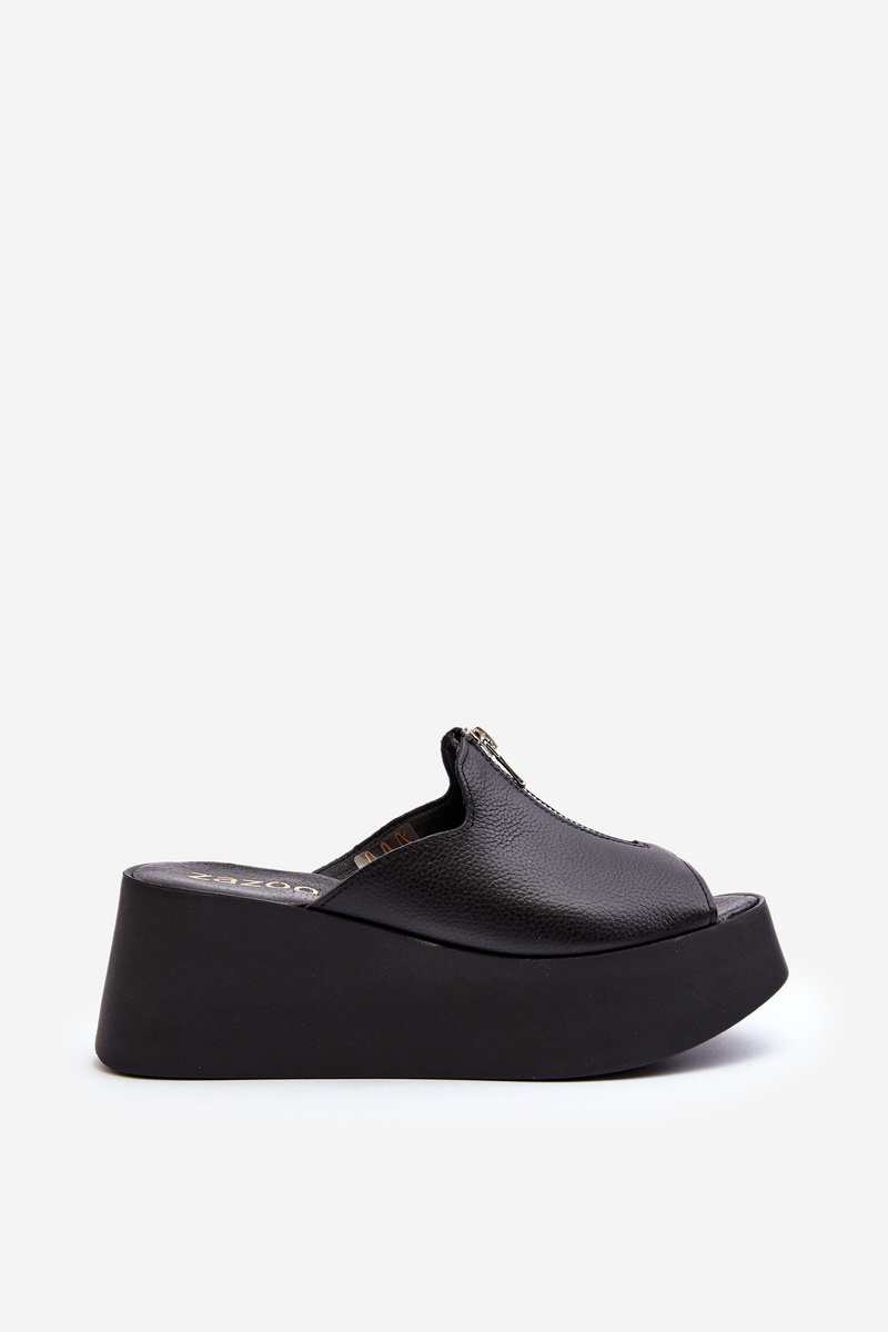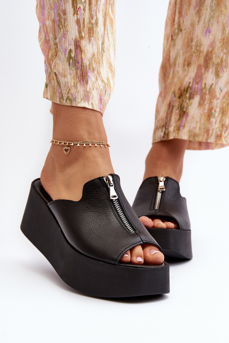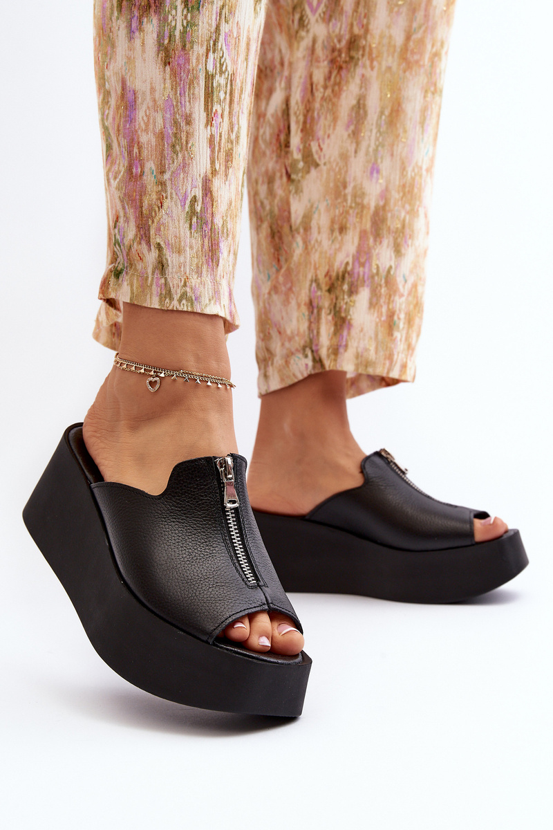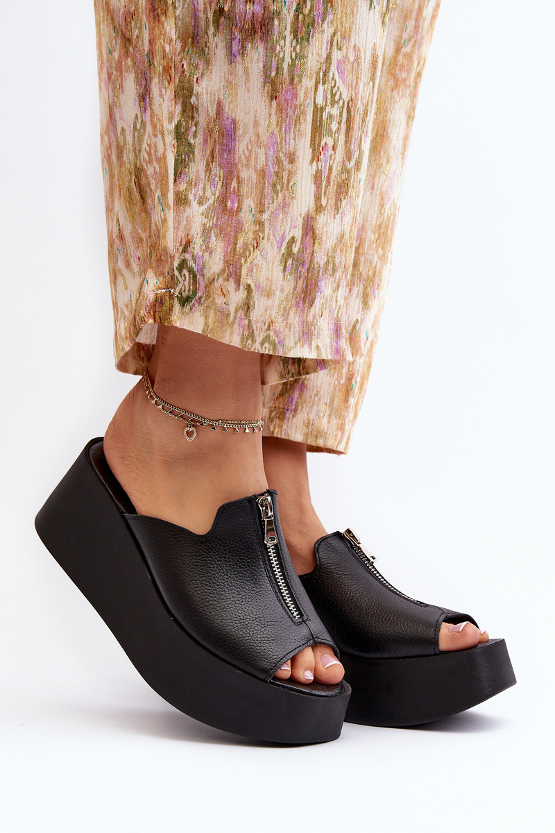 Стильні жіночі шльопанці на масивній платформі. Виготовлений з натуральної шкіри. Декоративна блискавка спереду верху. М'яка шкіряна устілка забезпечить комфорт навіть у спекотні дні! Обов’язково перегляньте всю нашу колекцію жіночих шльопанців! Обираючи розмір, орієнтуйтеся на таблицю розмірів.