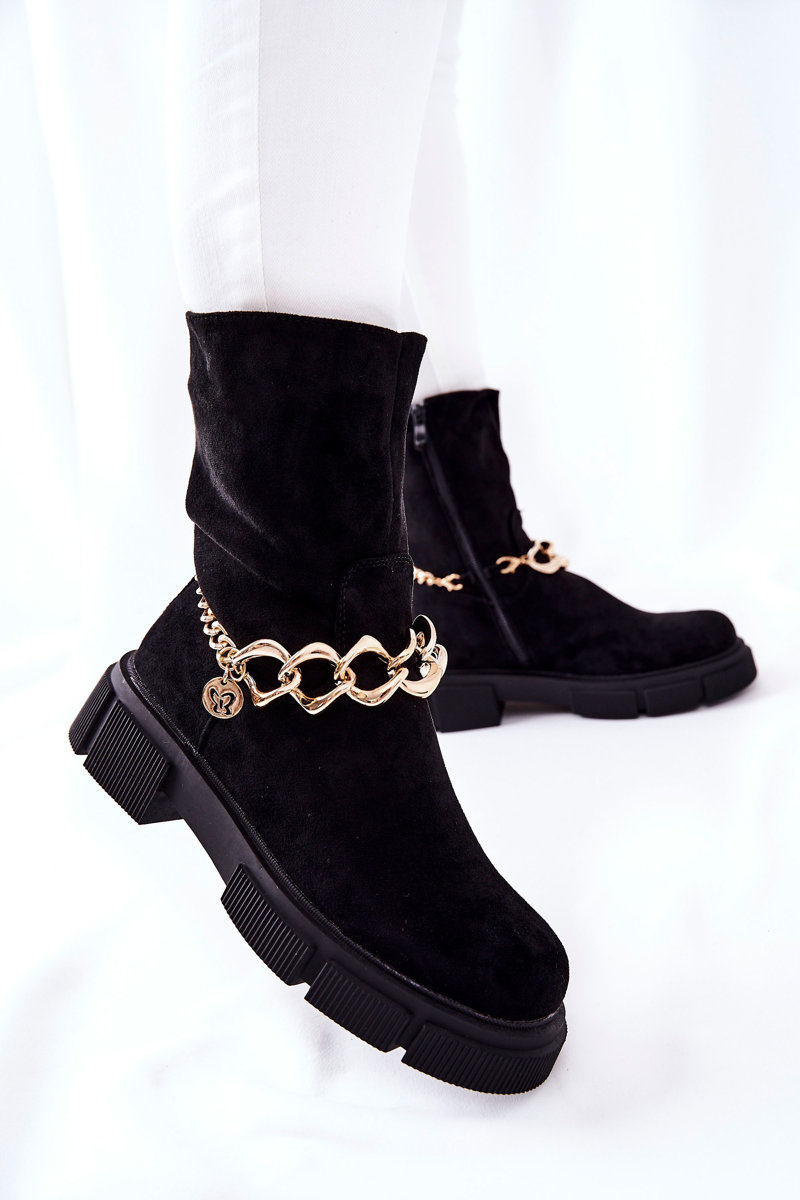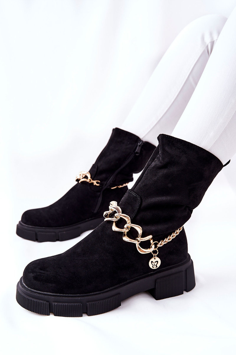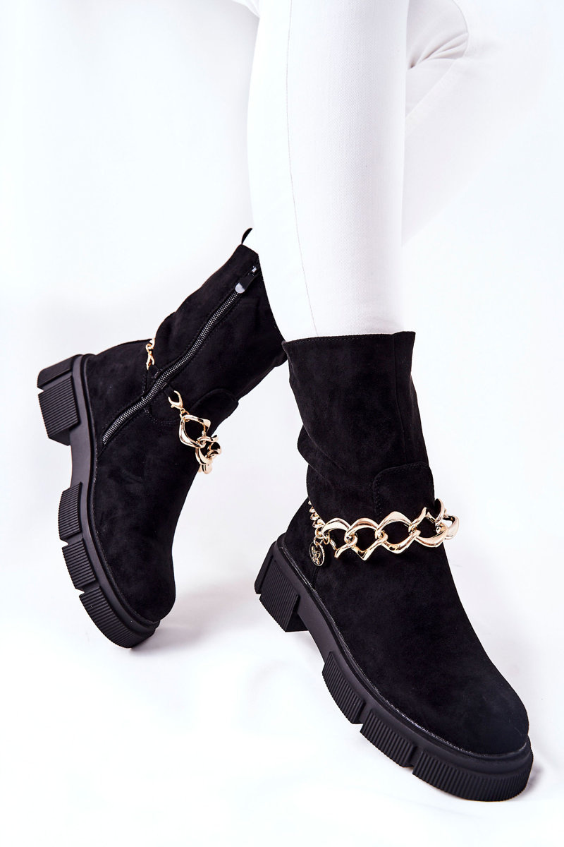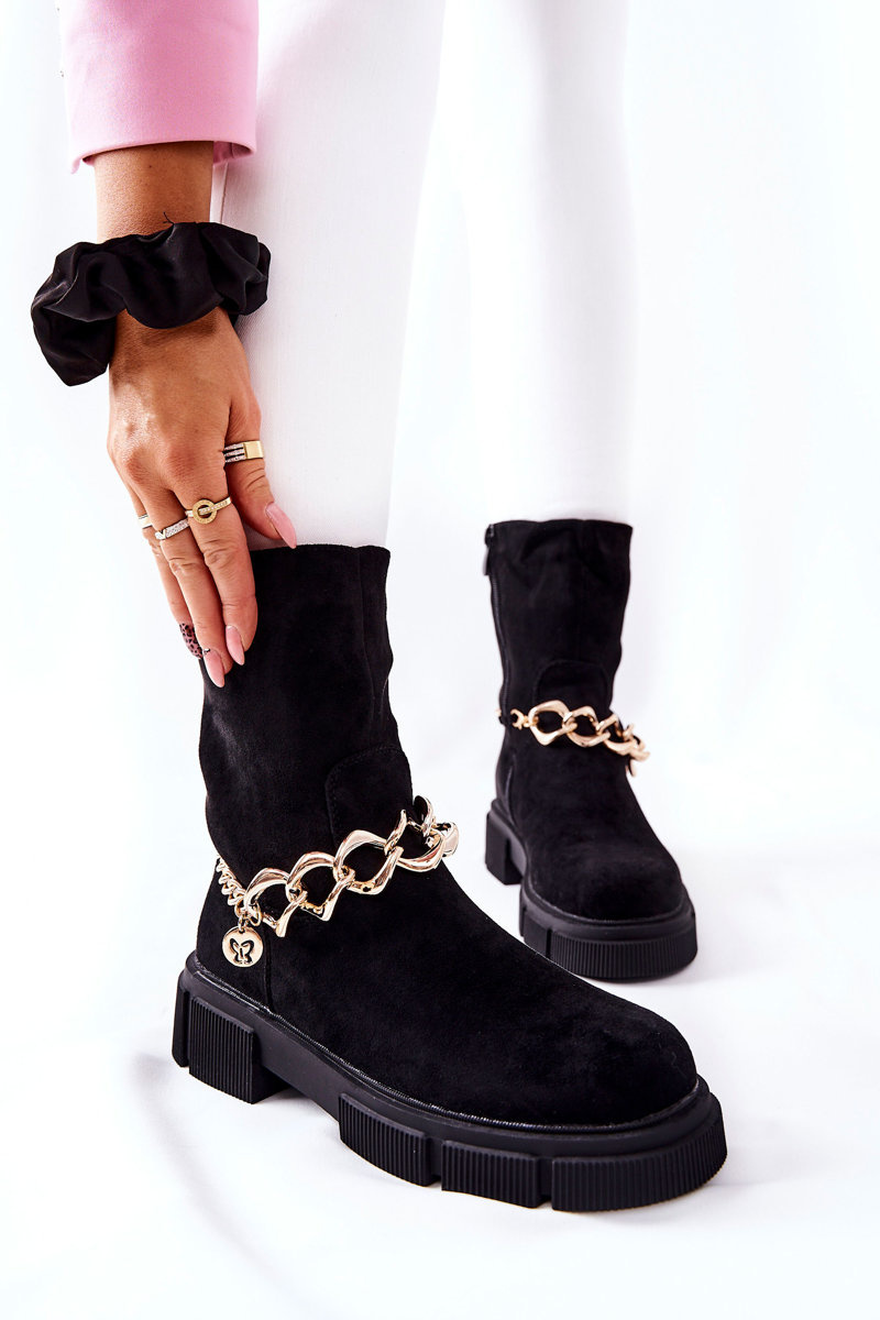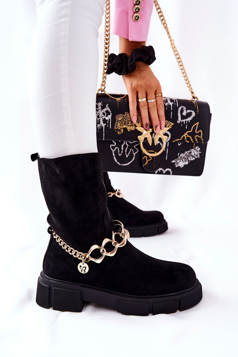 Красиві чоботи з еко замші підійдуть до багатьох укладок. Товста підошва робить черевики стійкими. Завдяки декоративному ланцюжку вони виглядають дуже стильно. Застібка на блискавку. Зсередини утеплений м'яким хутром. Не пропустіть свій шанс і купіть їх сьогодні!Для вибору розміру зверніться до таблиці розмірів..