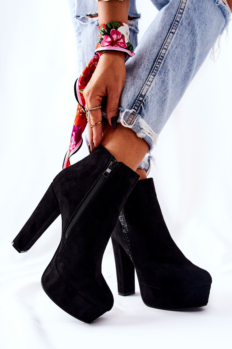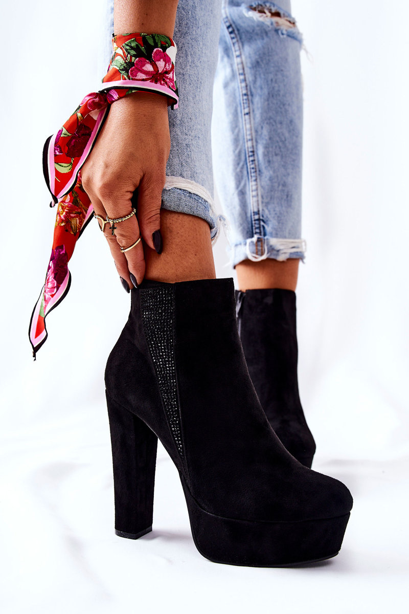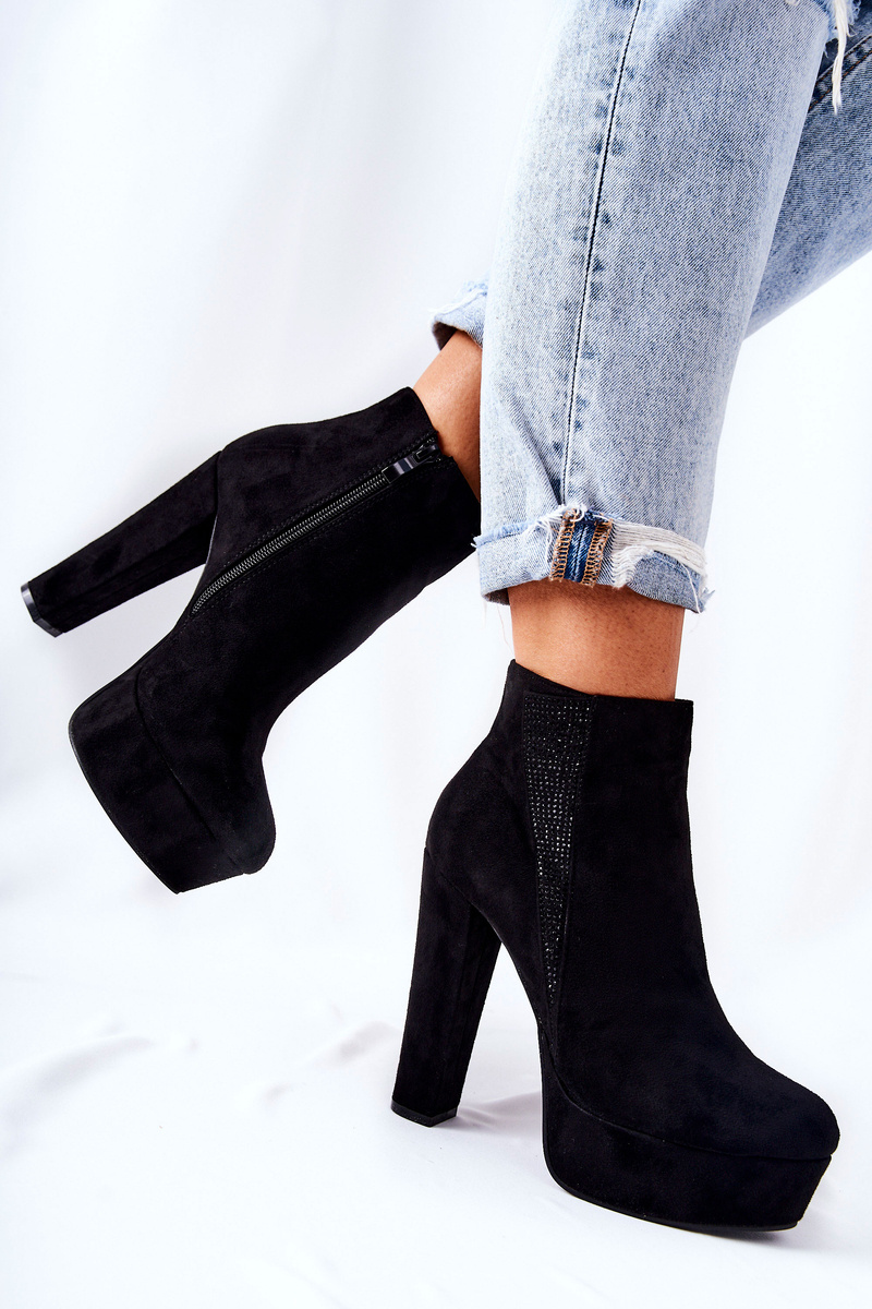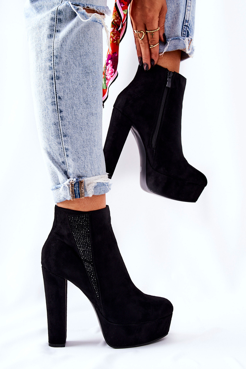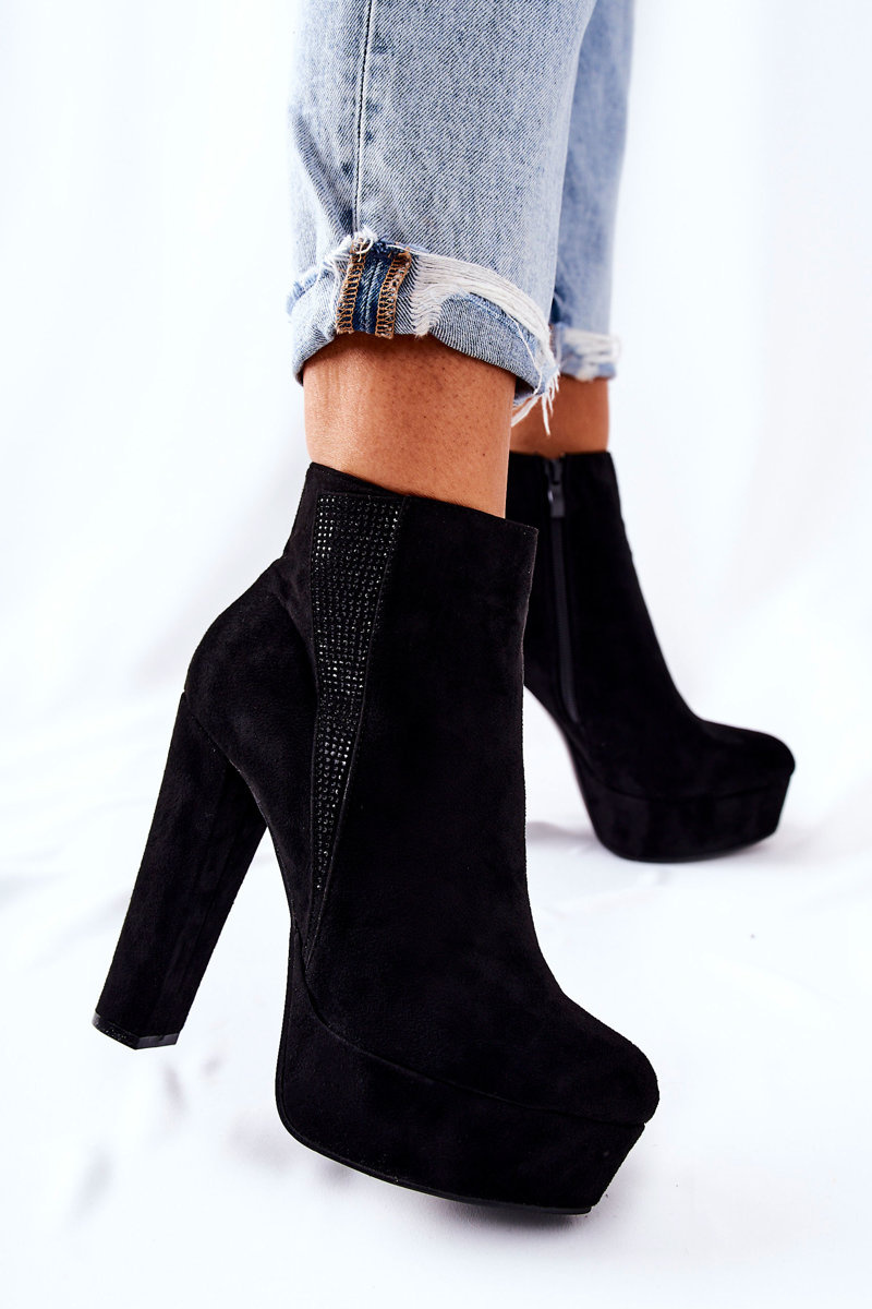 Симпатичні чобітки на високому каблуці та платформі стрункішають ноги та оптично подовжують. Виготовлений із замшевої екошкіри. Застібка на блискавку. Збоку прикрашена дрібними цирконами. Ідеально підходить для різноманітних заходів або прогулянок з друзями! Перегляньте всю нашу пропозицію чобіт!