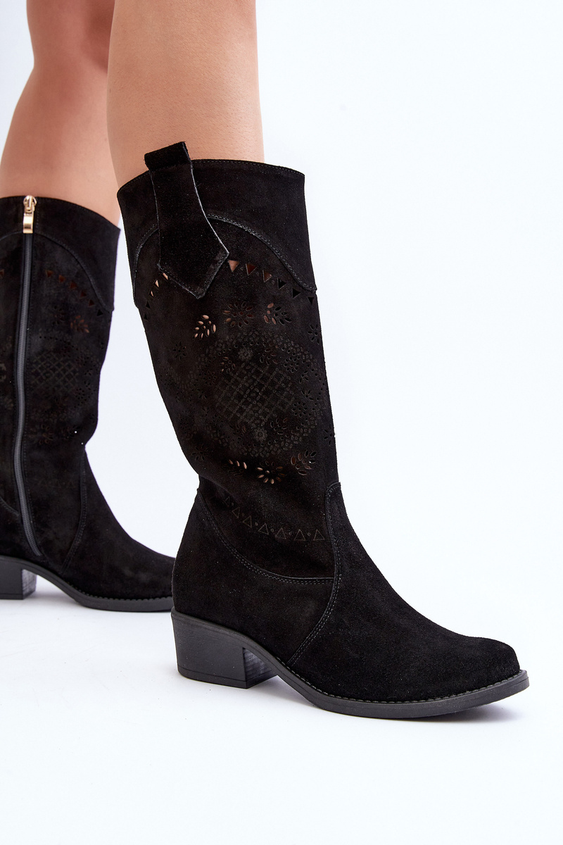 Чорні замшеві чоботи на низьких підборах Zazoo 4043