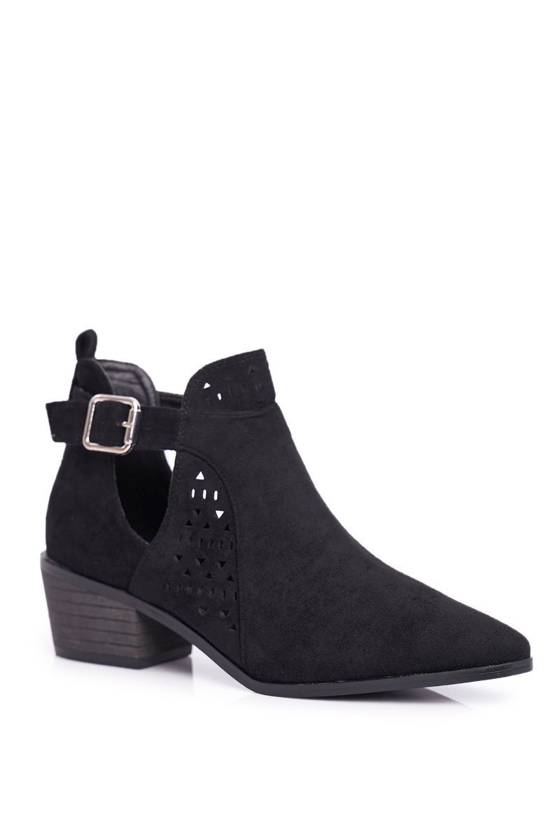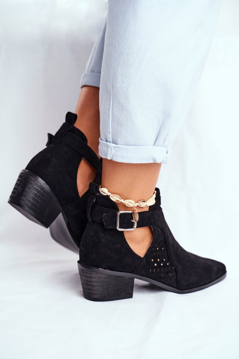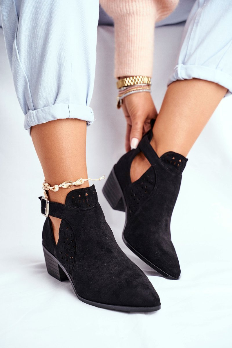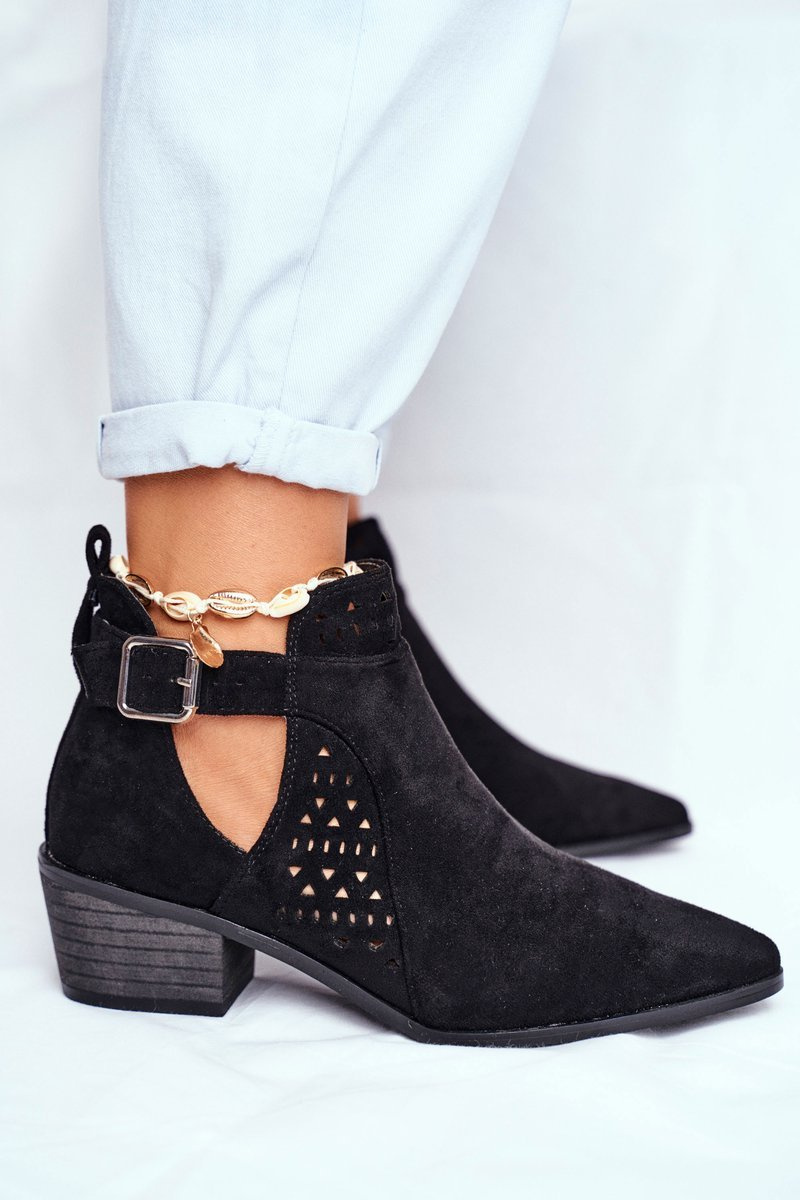 Чорні замшеві чоботи на підборах з пряжкою Esen
