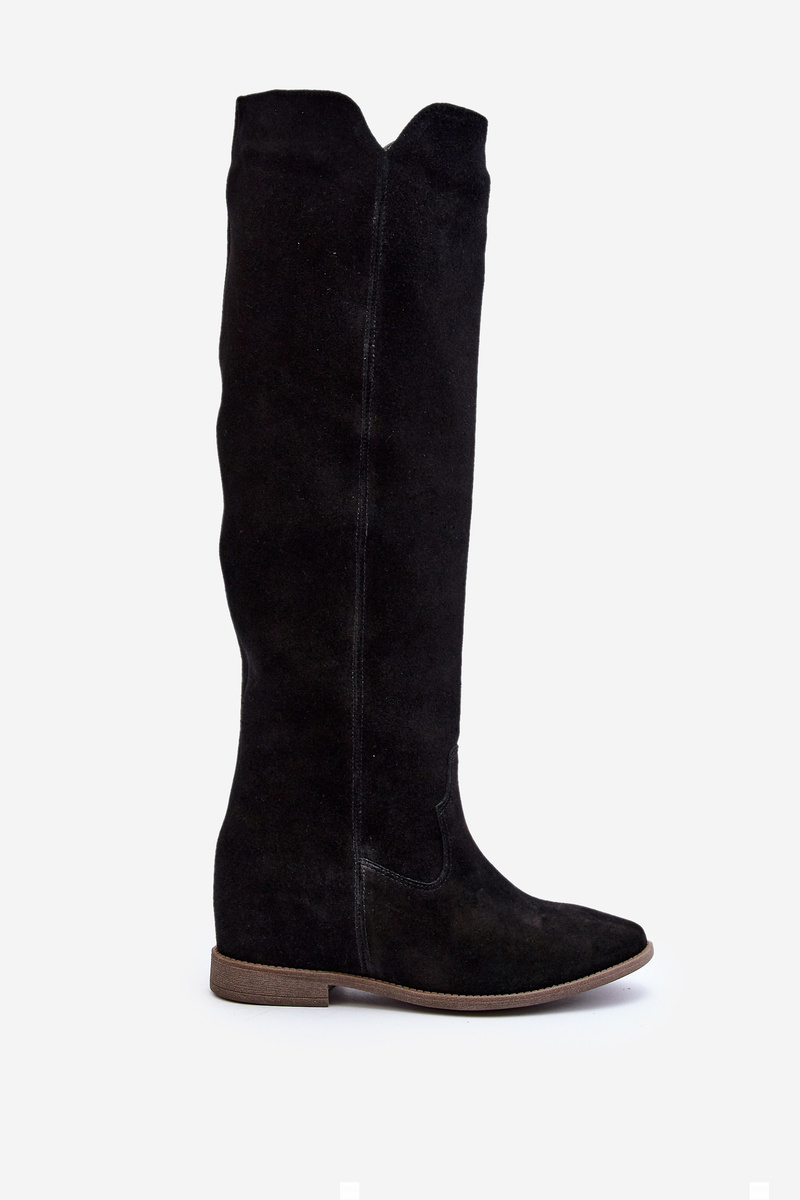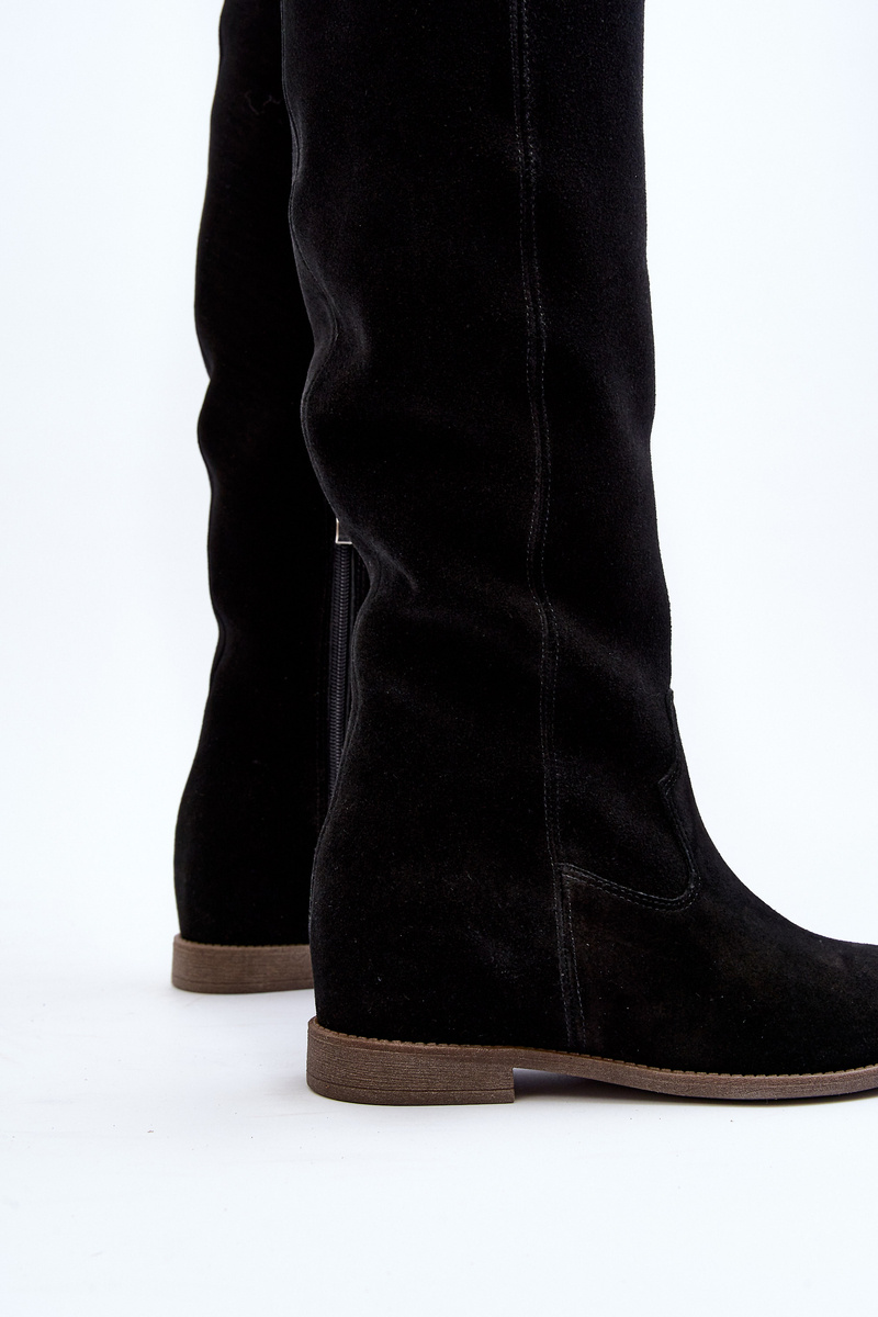 Чорні замшеві чоботи Zazoo 3407 на плоскій каблуці