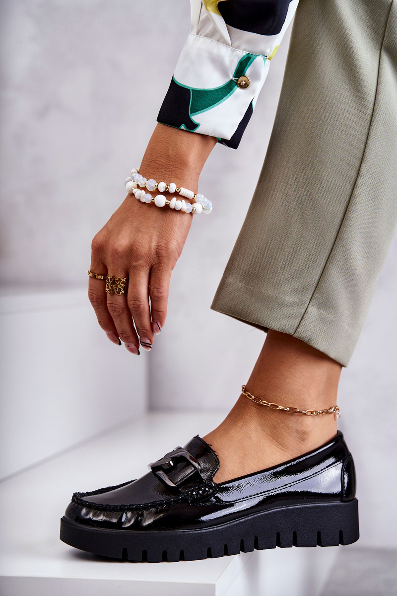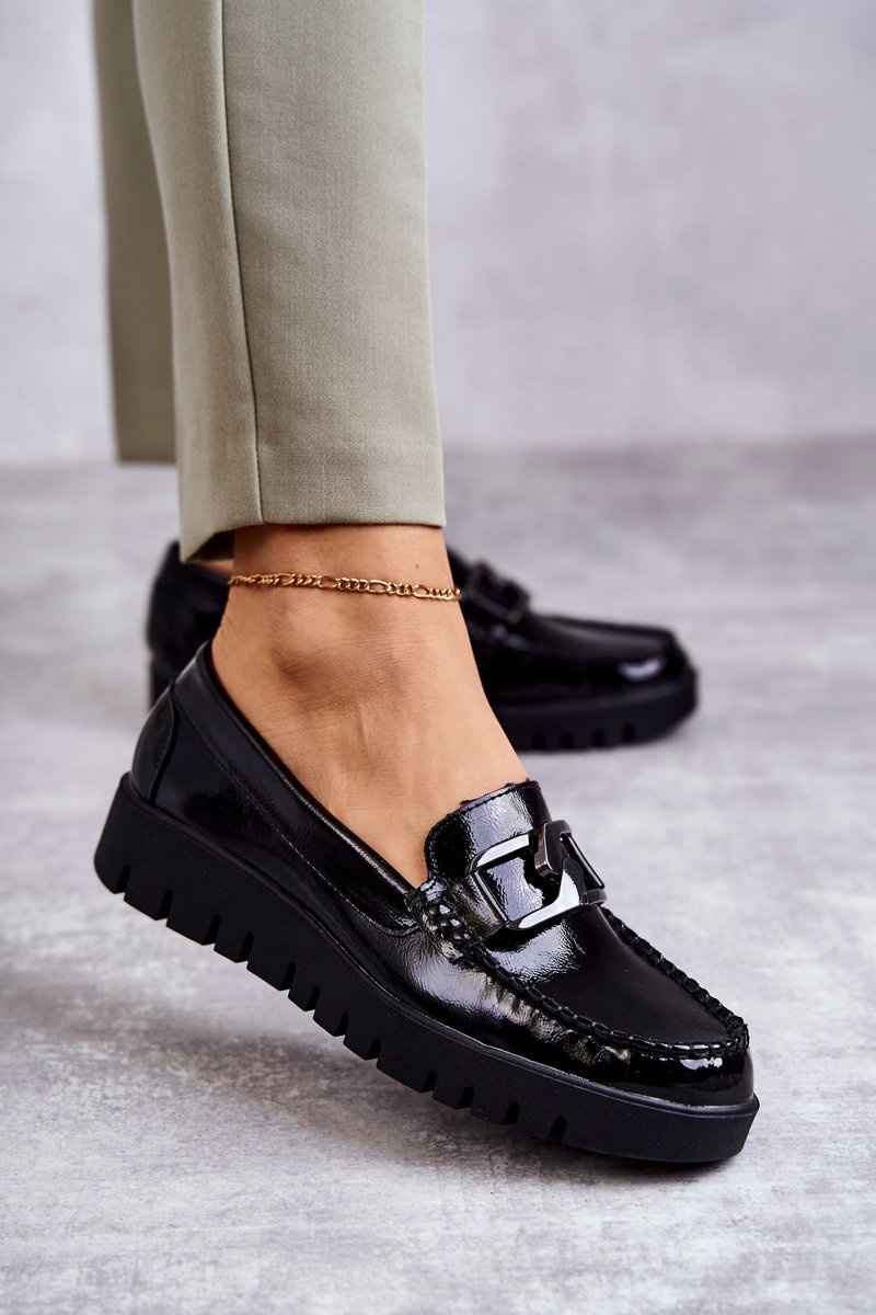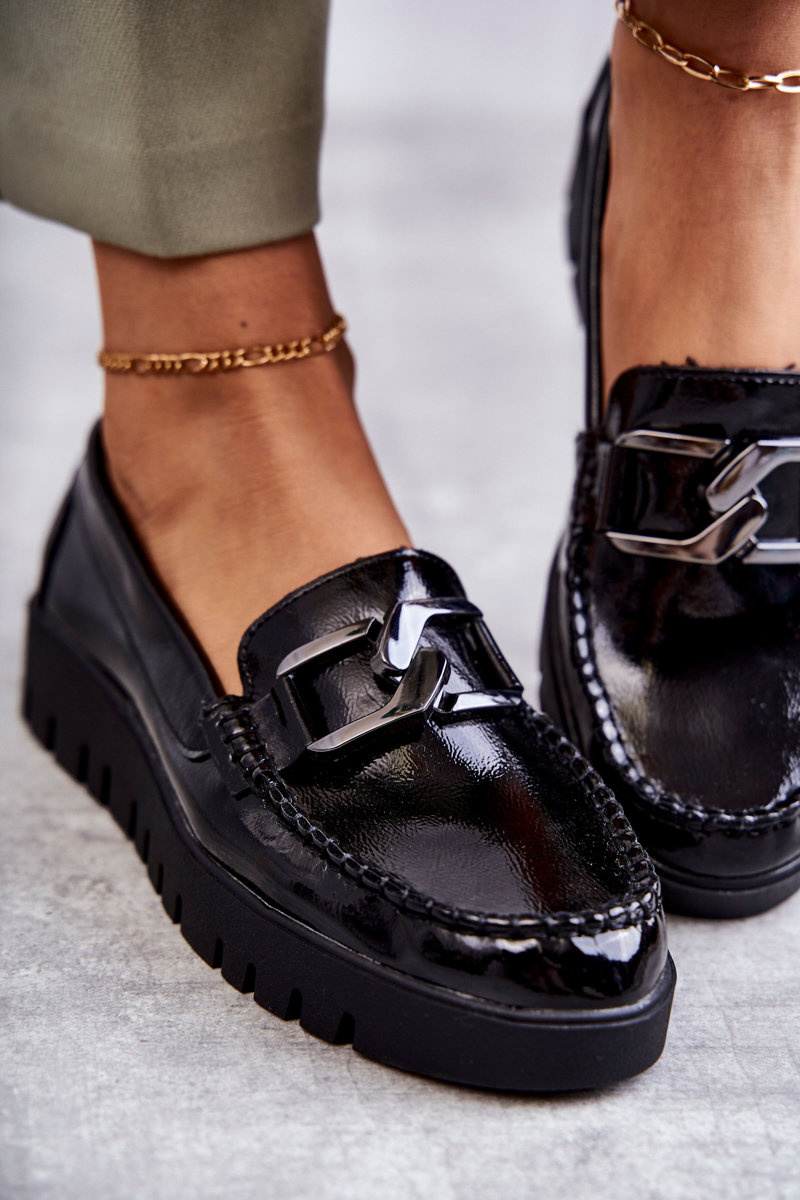 Класичне взуття - відмінний вибір для робочого стилю. Вони чудово виглядають як з брюками, так і зі спідницею. Пластикове оздоблення красиво підкреслює ціле. Взуття має масивну підошву з виразною виїмкою. Лакована екошкіра - практичний вибір для повсякденного використання. Лофери - це взуття, яка обов'язково повинна бути у вашому гардеробі! При виборі розміру скористайтеся таблицею розмірів.