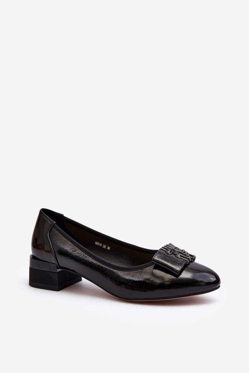 Зручні човники з м'якою устілкою з натуральної шкіри забезпечать комфортне використання взуття навіть протягом дня! Встановлений на каблук у вигляді низької ширшої стійки. Ідеальна модель для роботи або сімейного торжества. Взуття має прикрасу у вигляді ланцюжка на передній частині верху. Крім того, каблук у цьому взутті посилений. Вибираючи розмір, орієнтуйтеся на таблицю розмірів.