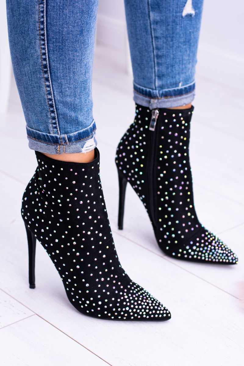 Високі черевики не обов’язково мають бути великими та важкими. Наша пропозиція - елегантні замшеві чоботи на шпильці, які доповнять осінній стиль. Черевики надзвичайно зручні. Вони добре підійдуть для елегантного стилю. Додатковим декором є циркони по всій поверхні взуття. Не чекайте більше і купуйте зараз! При виборі розміру дотримуйтеся таблиці розмірів.