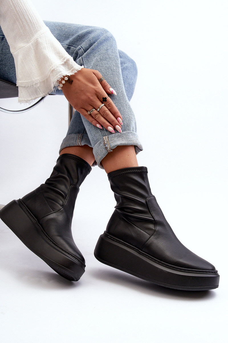 Чорні шкіряні жіночі черевики Zazoo 3395 на масивній платформі
