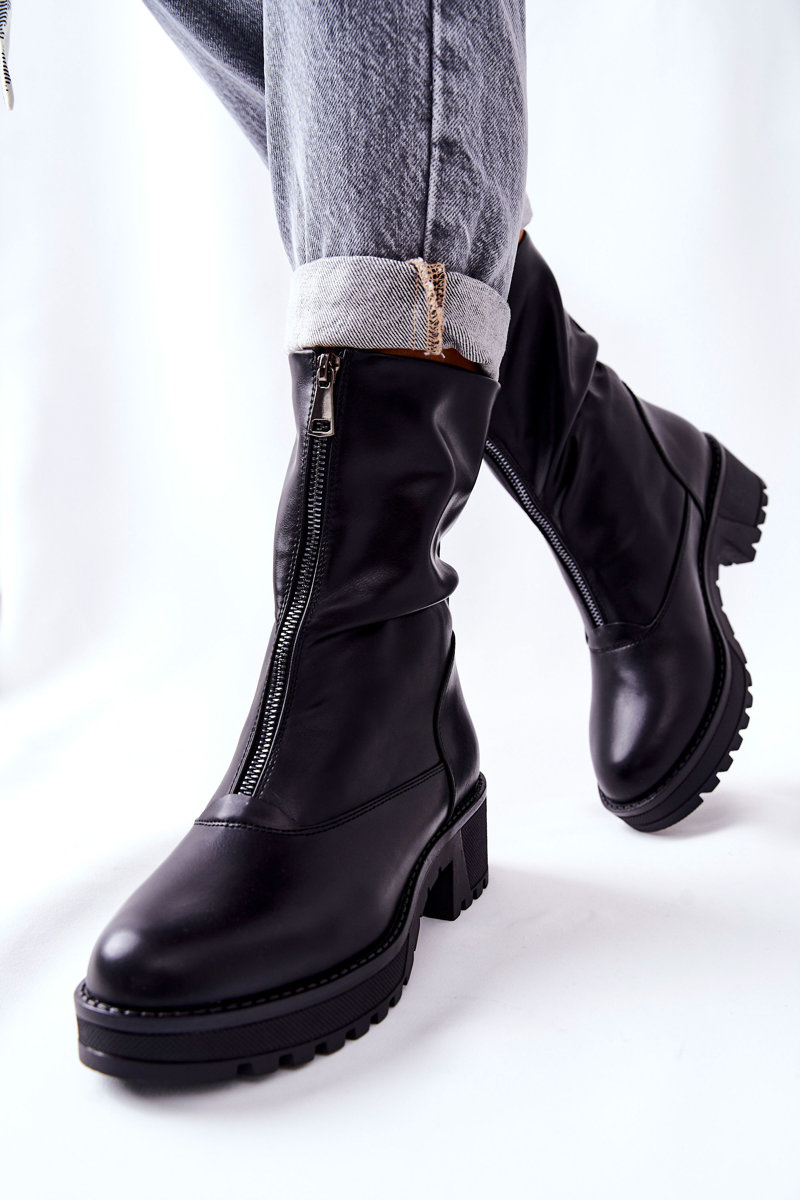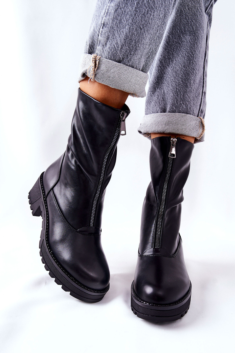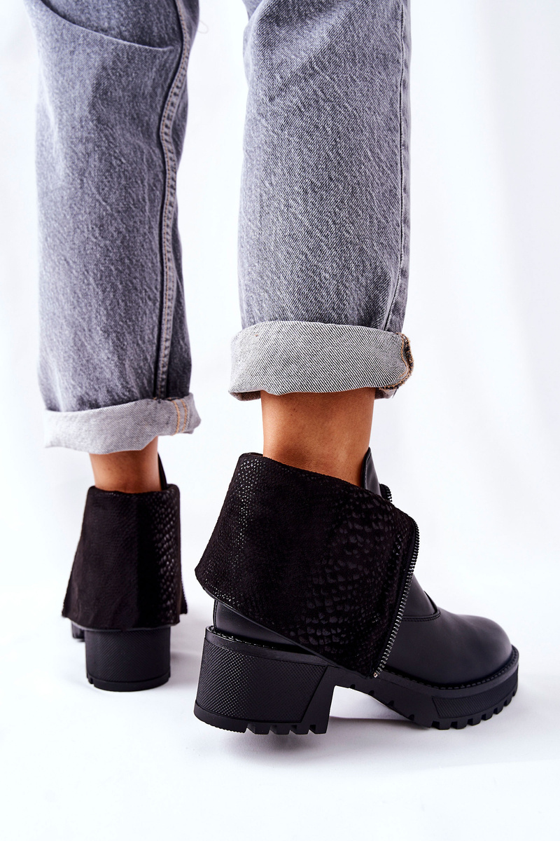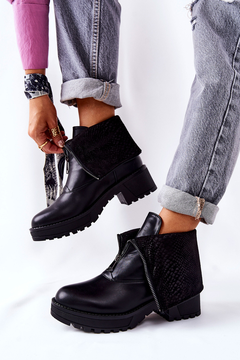 Ботильони з еко шкіри. Вони мають блискавку на передній частині верху, що робить їх зручними в носінні. Верх згорнутий. Приємна на дотик ковдра для взуття стане в нагоді в холодні осінні дні. Масивна плоска п'ята забезпечує стійкість і комфорт у використанні. Під час вибору розміру радимо використовувати таблицю розмірів.