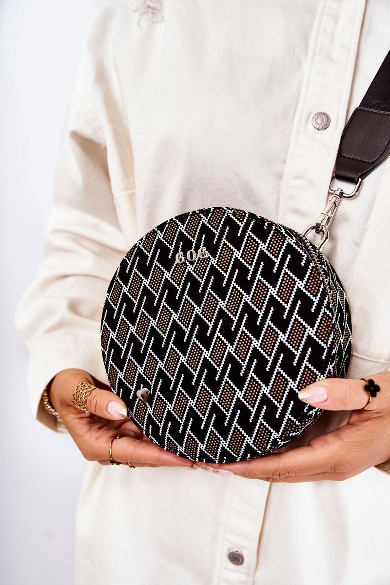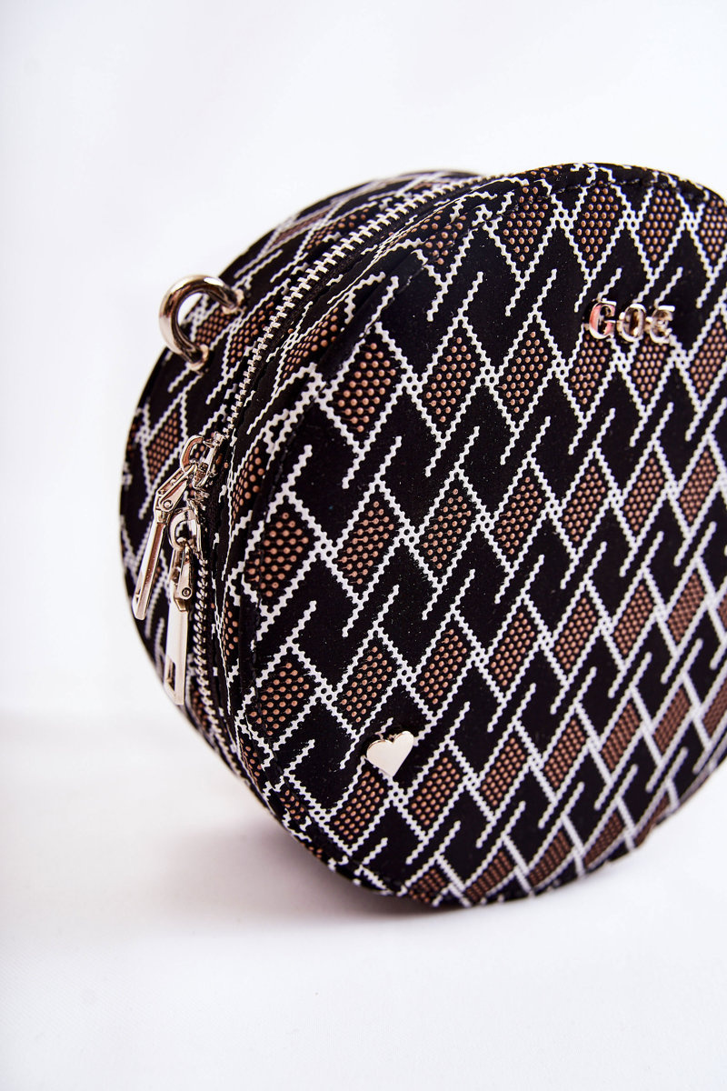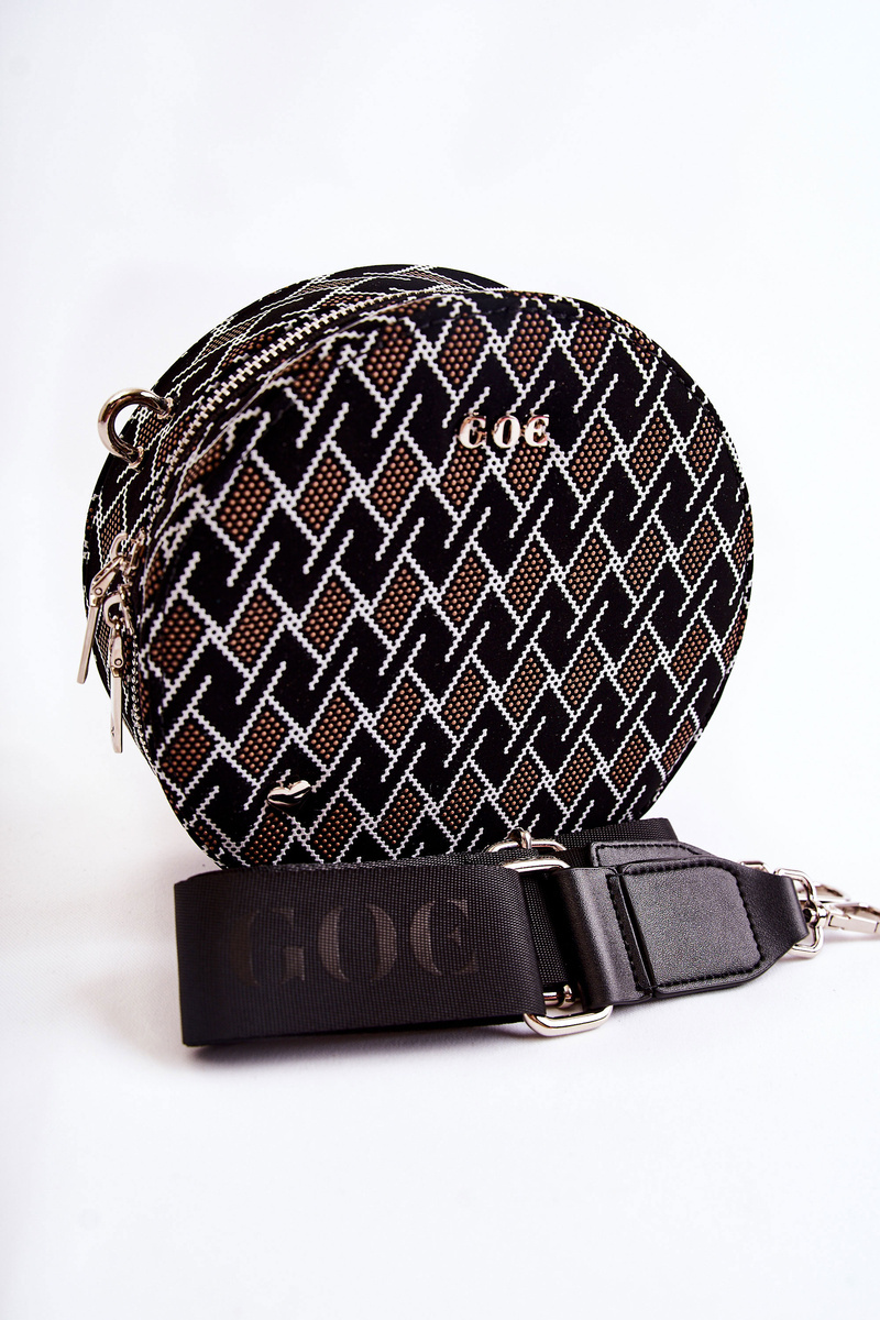 Красива сумочка - скринька від бренду GOE! Виготовлений з високоякісного матеріалу. На передній частині розміщений логотип бренду GOE і декоративна емблема у вигляді серця. Сумка має одне відділення, що закривається на блискавку. Посередині одна відкрита кишеня і одна закрита на блискавці. Підкладка з тканини з декоративним малюнком. Сумка має один регульований знімний ремінь.