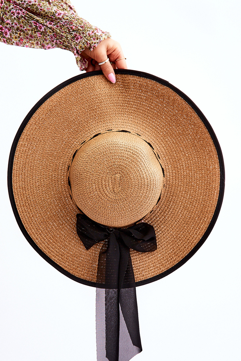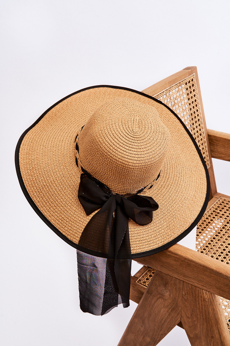 Жіночий капелюшок обов'язково сподобається кожній жінці, яка цінує модні та зручні аксесуари в сонячні дні! Капелюх має плетений ремінець з декоративним бантом з поліестеру. Краї каруселі оброблені тканиною. Всередині тасьма, яка дозволяє регулювати окружність шапки.