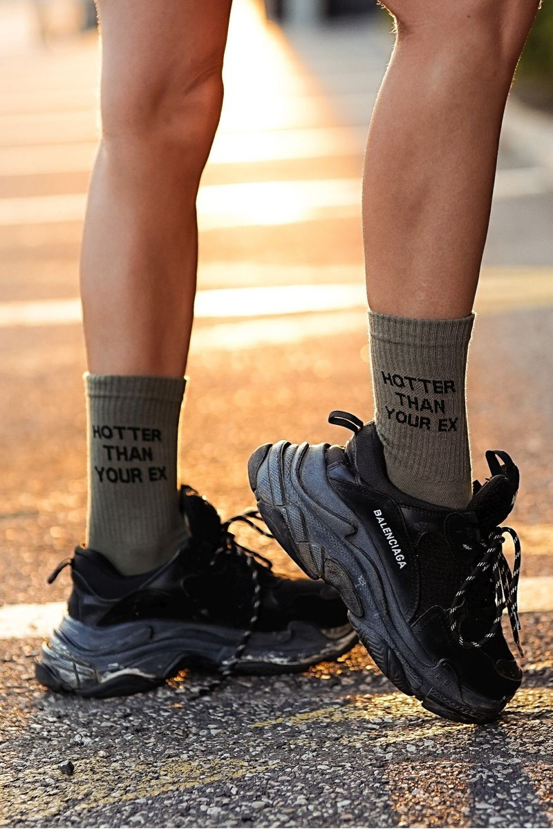 Шкарпетки жіночі з написом Hotter Than Your Ex оливкові