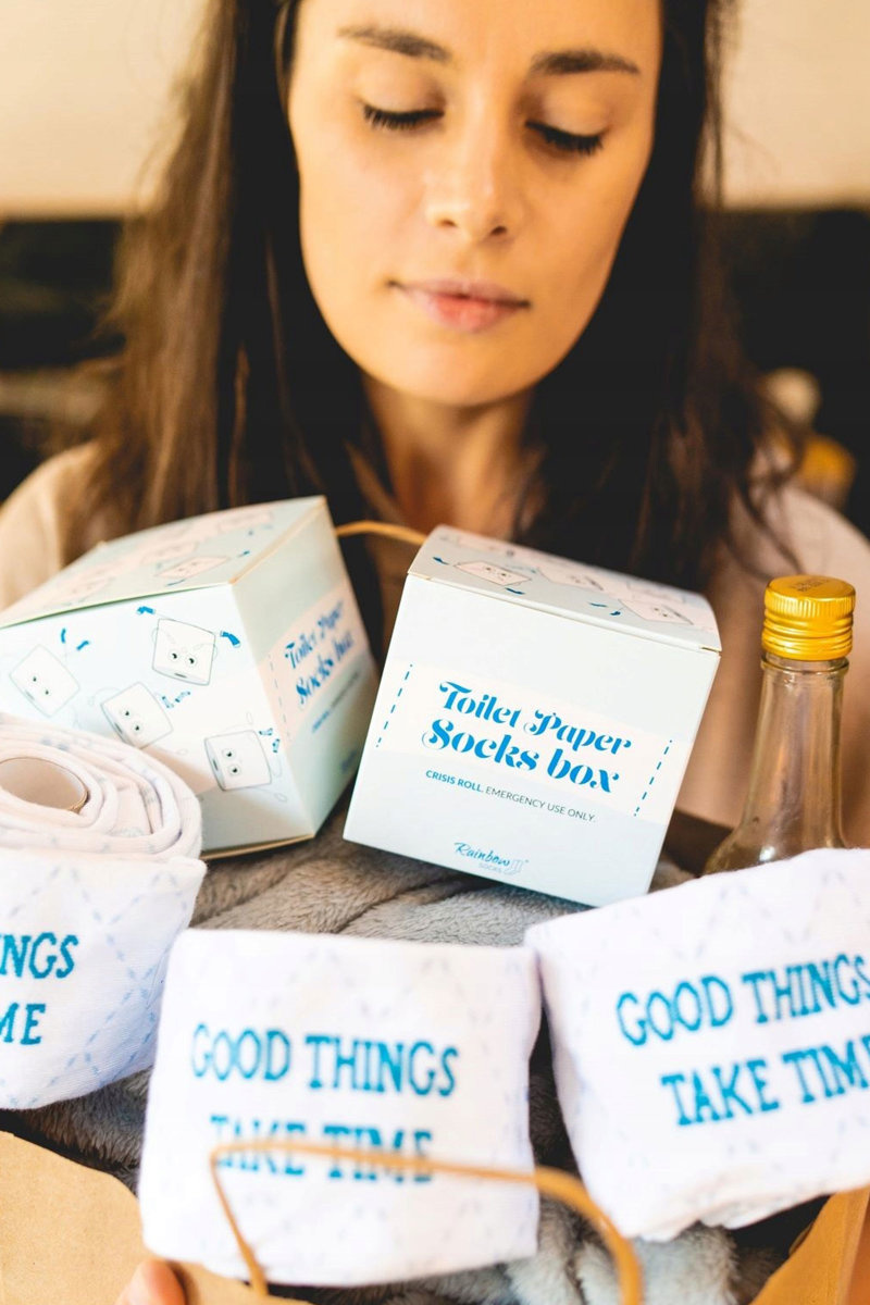 М'який, білий, гладкий, міцний... Який туалетний папір у вас улюблений? Ви готові до його нової версії?! В оригінальній коробці ви знайдете шкарпетки, що імітують рулон туалетного паперу. Пам'ятайте! Король залишається королем, незалежно від трону! Ці шкарпетки - ідеальний подарунок для коханої людини!