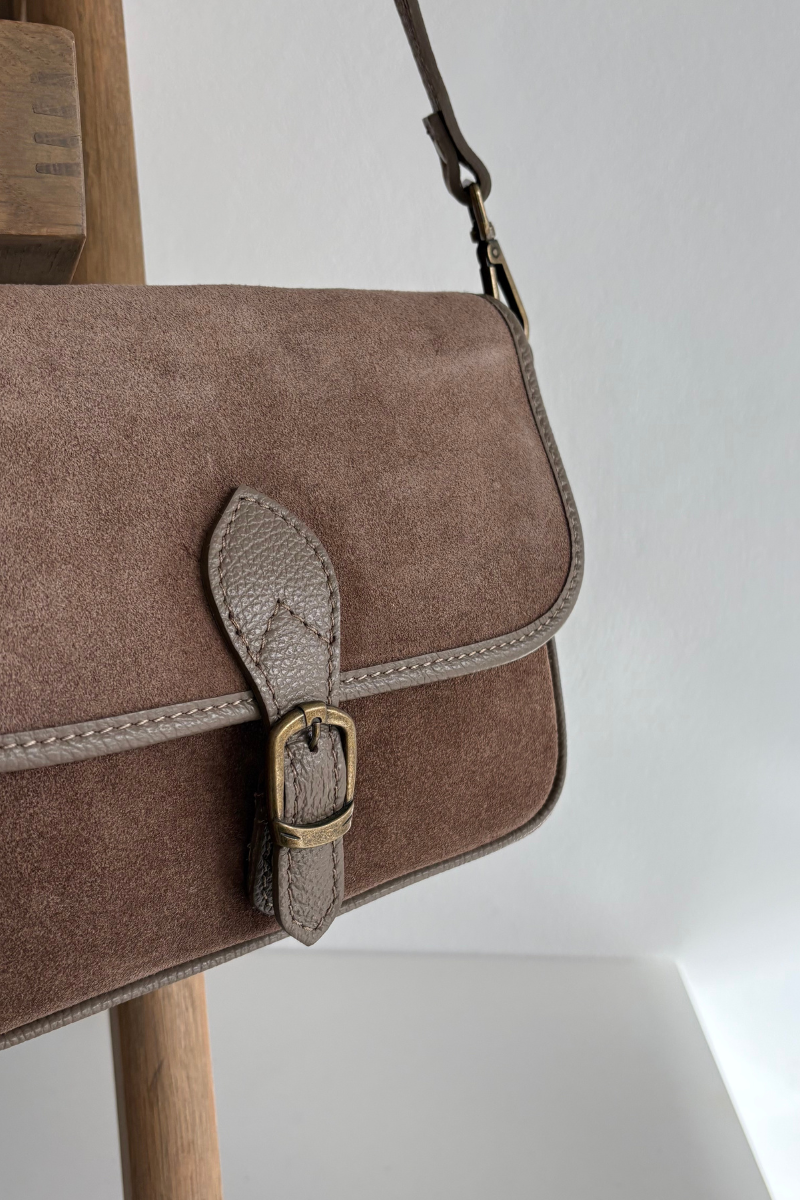 Шкіряна Замшева Сумка На Плічо Темно Бежевий Norla