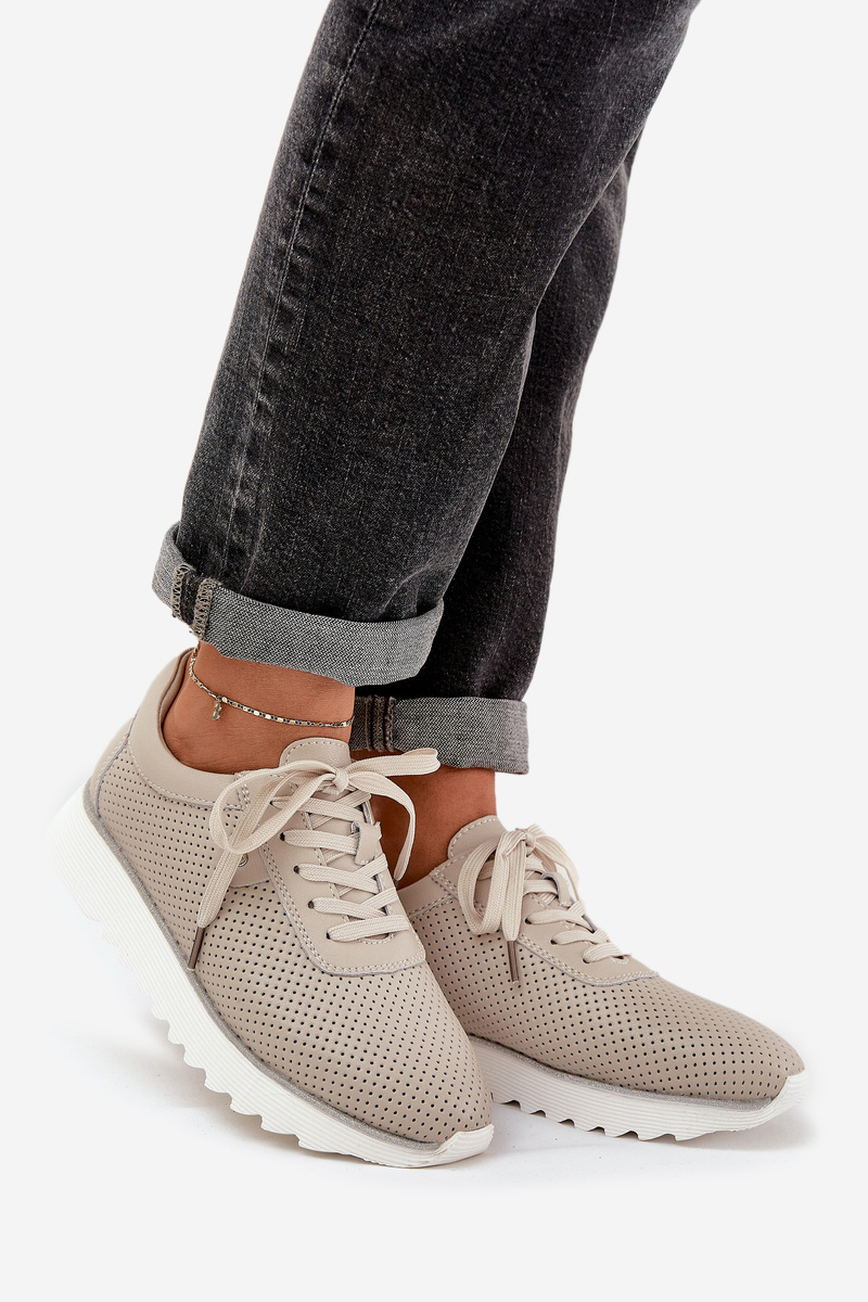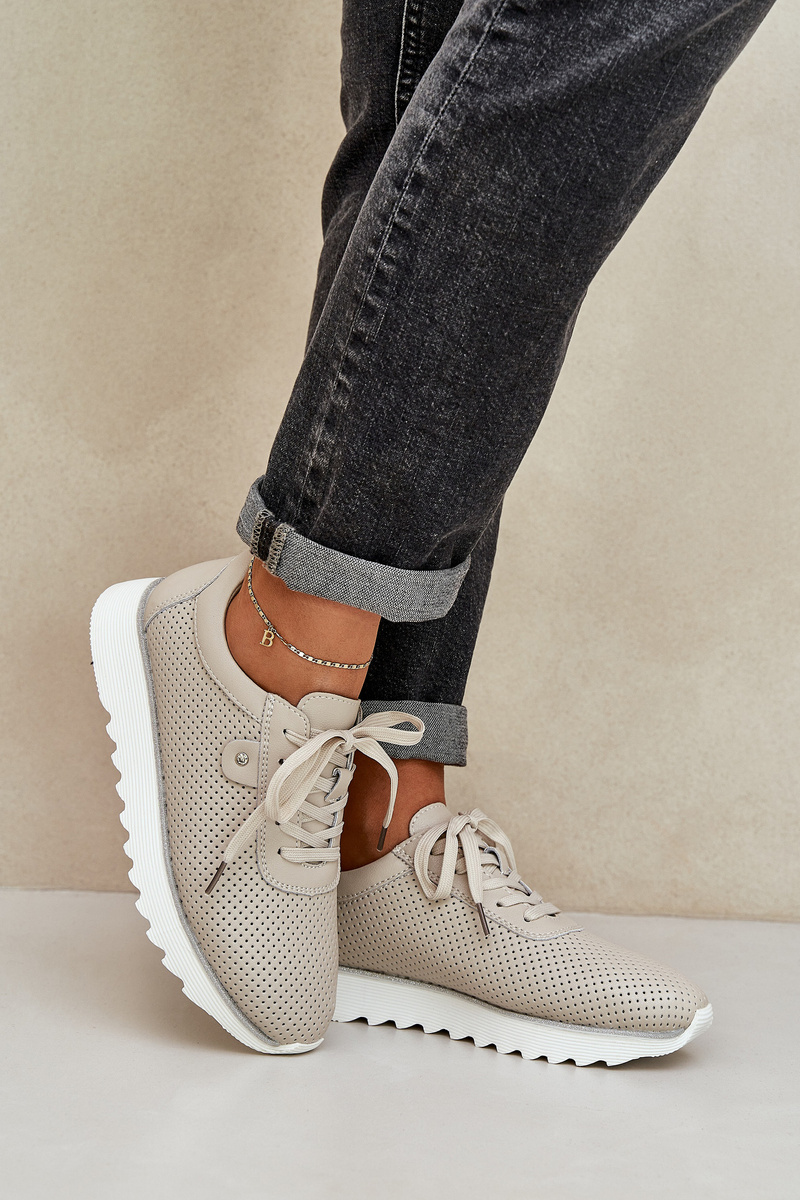 Шкіряне Спортивне Взуття На Платформі З Блиском D&A LR51-629 Бежеві