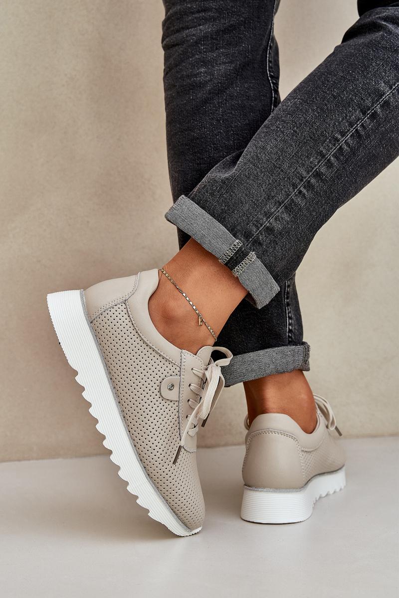 Жіночі спортивні туфлі з натуральної шкіри поєднують елегантність та комфорт. Розташовані на платформі з ніжним блиском, вони додають яскравості кожному стилю. Легкі та зручні, забезпечують комфорт протягом усього дня. Шкіряна устілка гарантує відповідну амортизацію та комфорт носіння. Ці туфлі стануть чудовим вибором для повсякденного носіння, поєднуючи модний вигляд з функціональністю. Будь ласка, зверніться до розмірної сітки при виборі розміру.