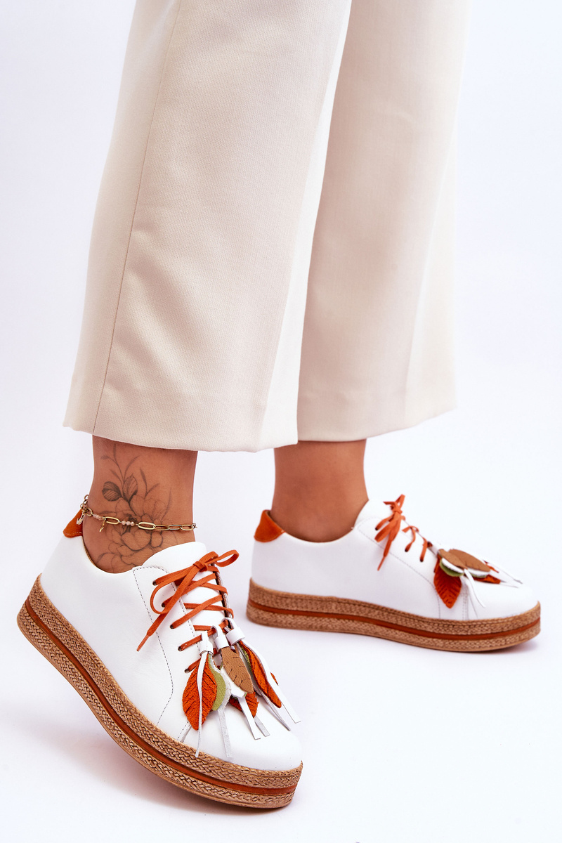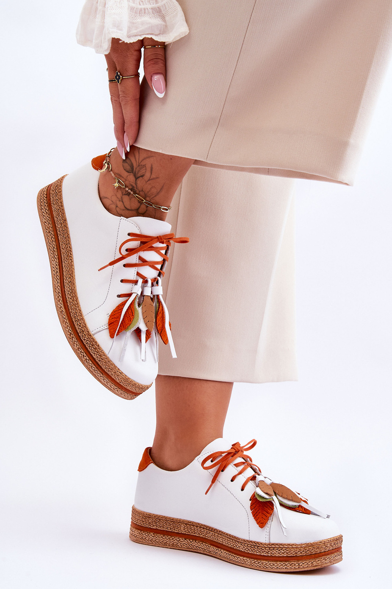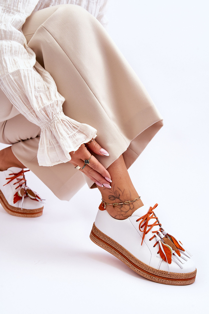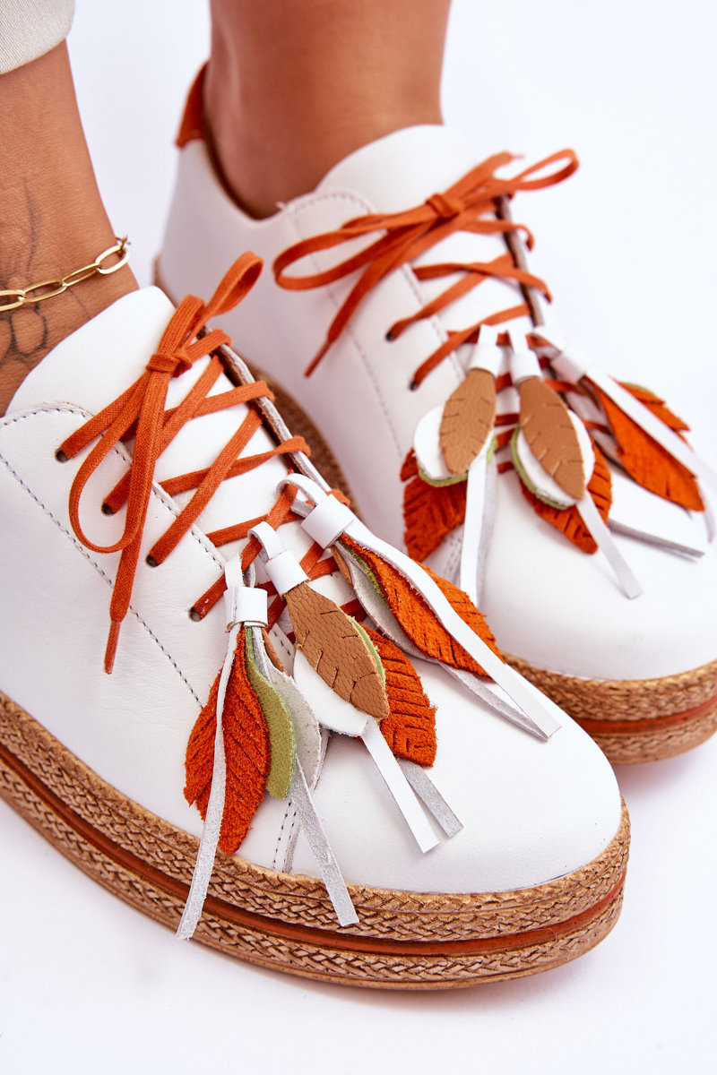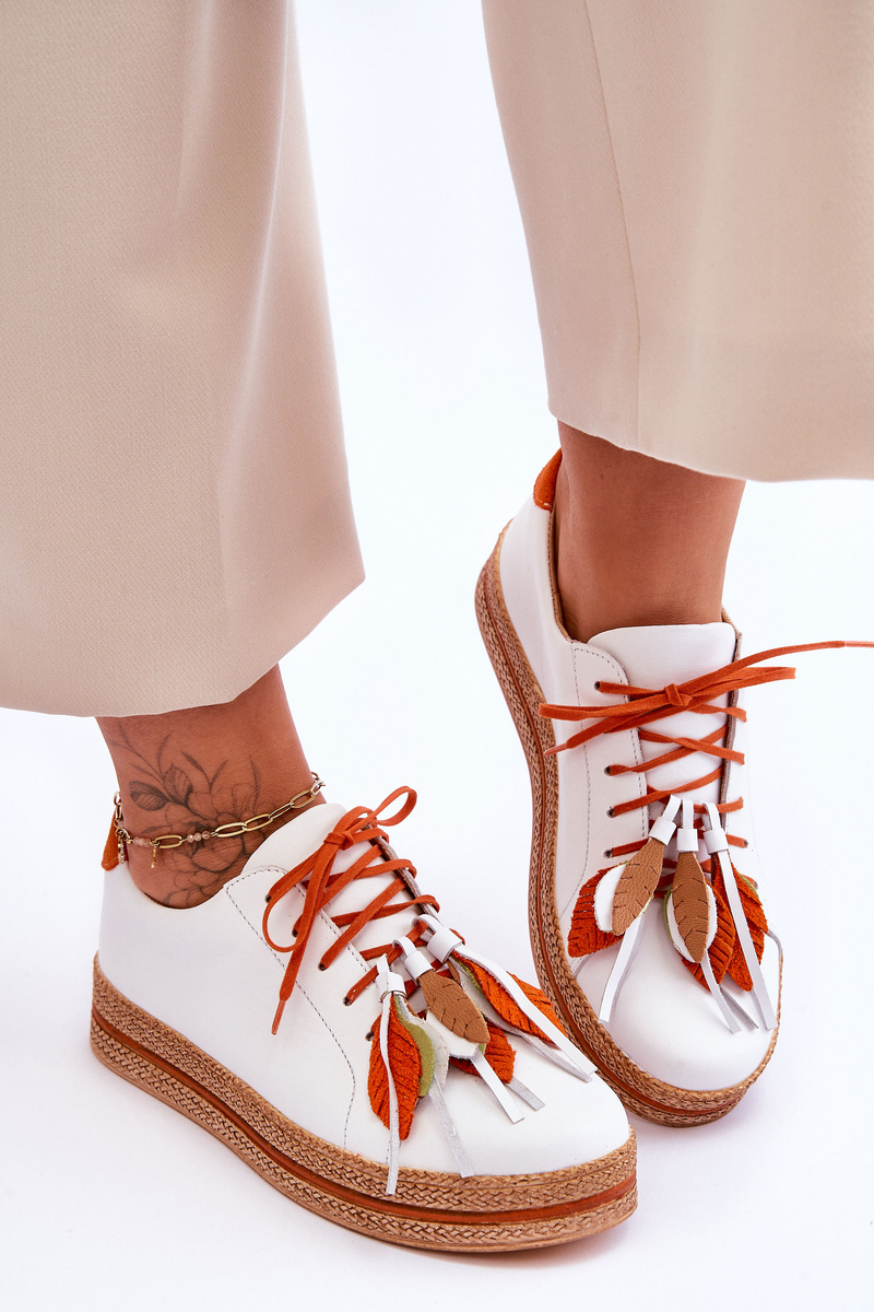 Чудовий крій взуття від компанії Maciejka. Виготовлений з натуральної шкіри. М'яка шкіряна устілка ідеально підходить для використання, забезпечуючи максимальний комфорт протягом дня. Тонкі шнурки прикрашені бахромою та листочками, які також можна зняти. Платформа м'яко підніме фігуру. Це взуття ідеально поєднує в собі спортивний і повсякденний стиль! При виборі розміру скористайтеся таблицею розмірів.