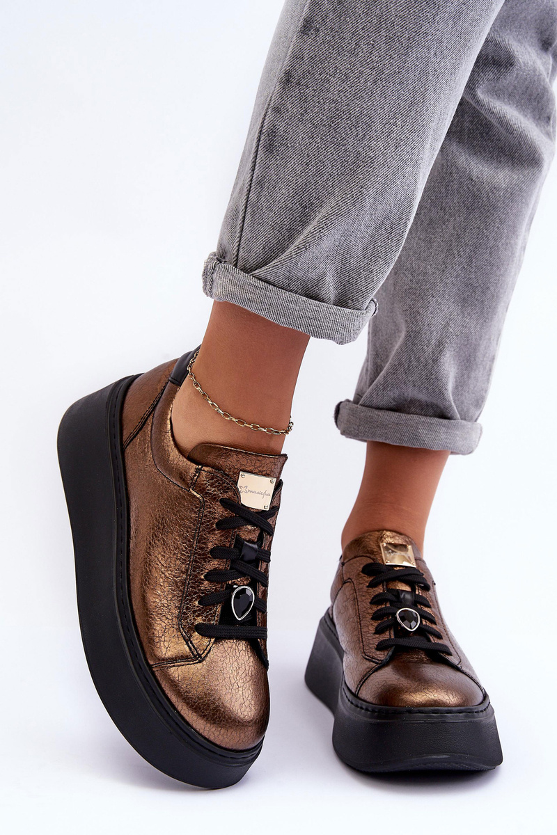 Шкіряне спортивне взуття на платформі Maciejka 06191-24 Мідь