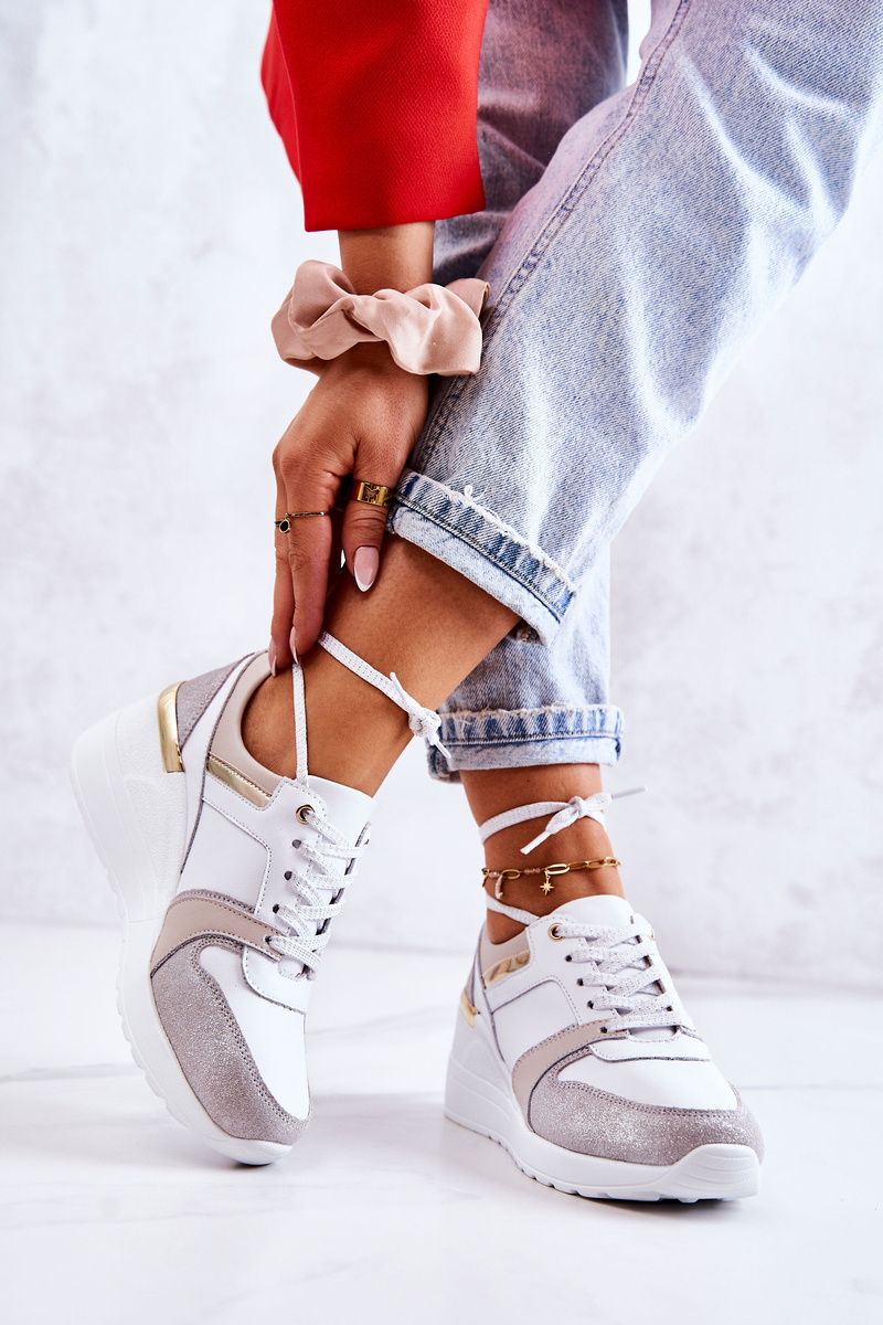 Шкіряне спортивне взуття на танкетці Біло-сіра Rayana