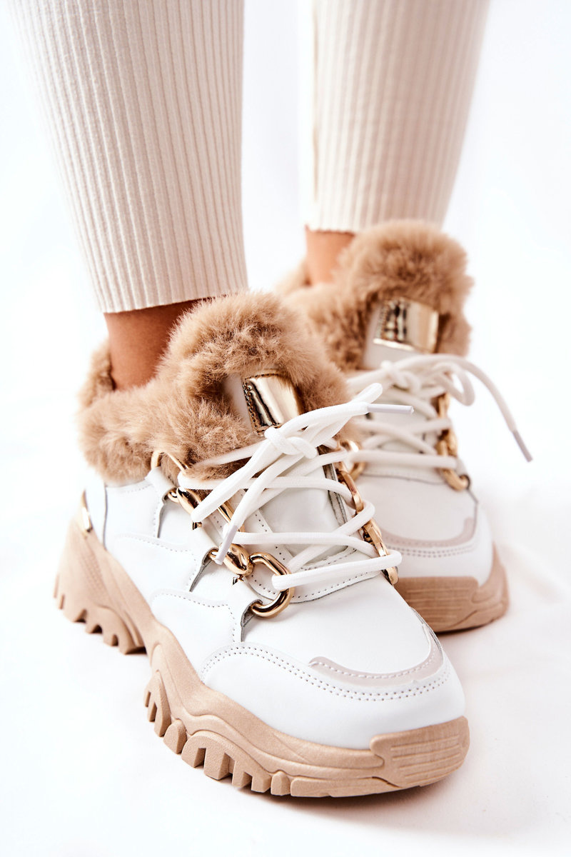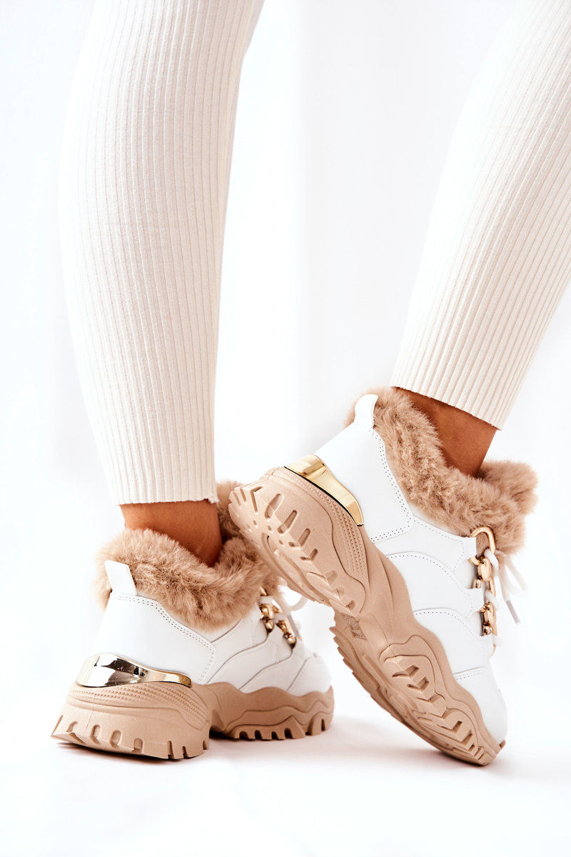 Шкіряне утеплене спортивне взуття білого та бежевого блиску