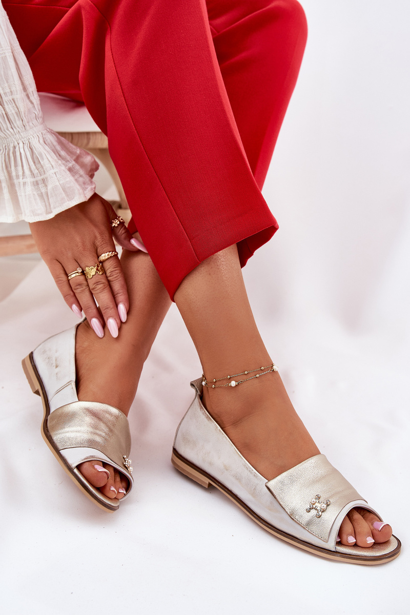 Шкіряні Елегантні Балерини З Відкритими Пальцями Zazoo 1865 Золото Зношене