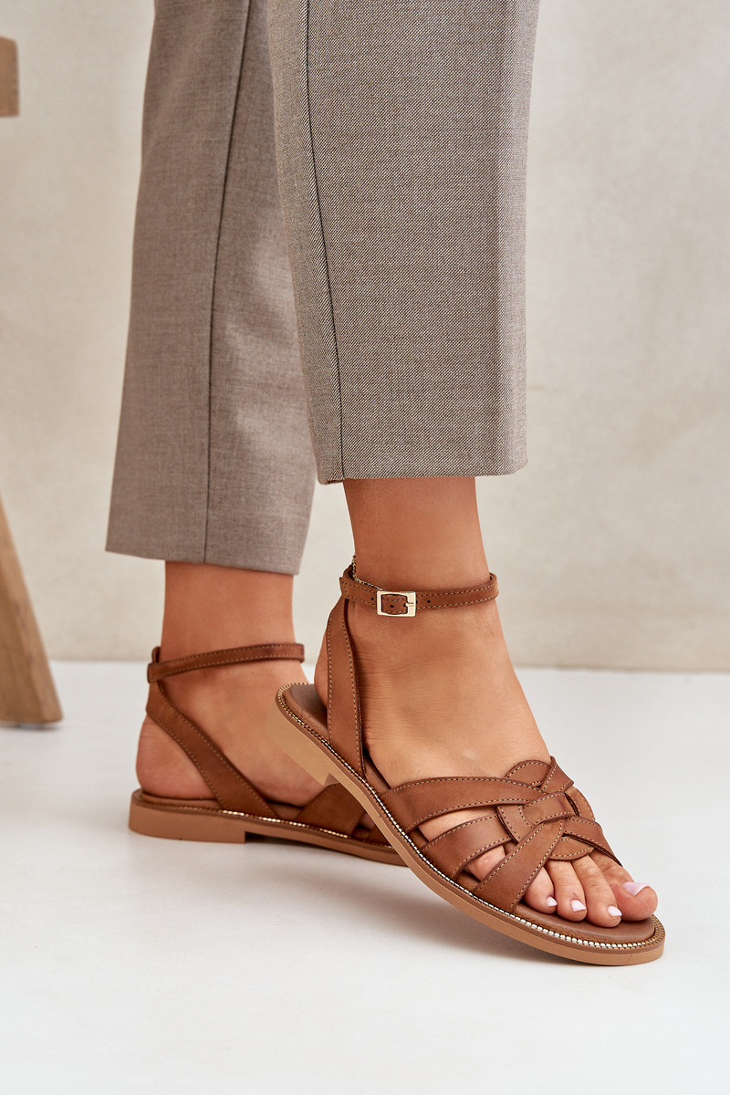 Шкіряні Жіночі Сандалі На Плоскому Каблуці Zazoo 3688 Camel