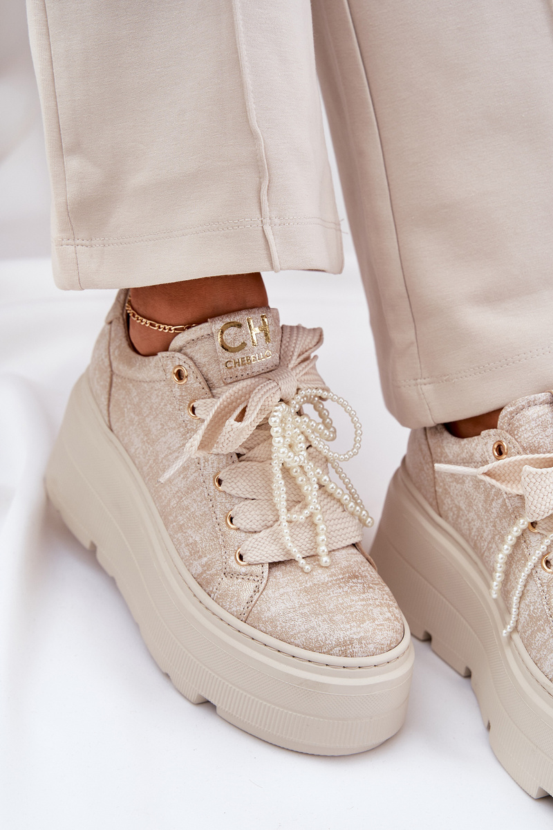 Шкіряні Кросівки На Платформі CheBello 4658 Золоті