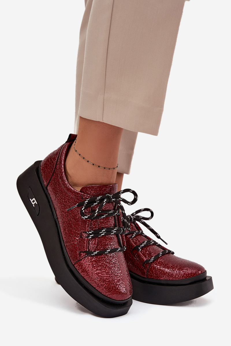 Шкіряні Лаковані Жіночі Мокасини На Платформі Artiker 57C2046 Бордовый