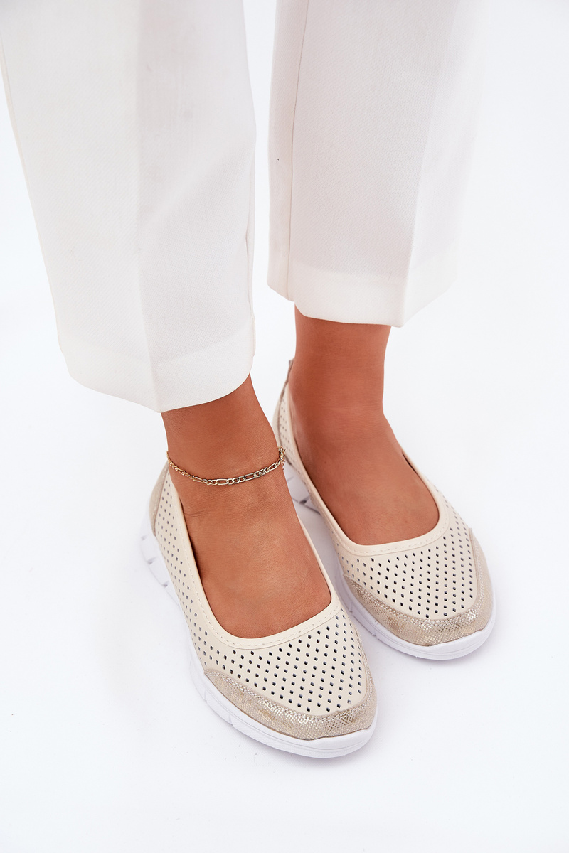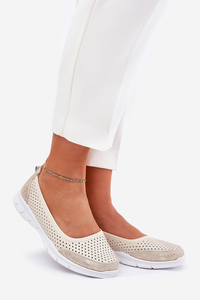 Шкіряні Перфоровані Балетки Vinceza 95323 Бежеві