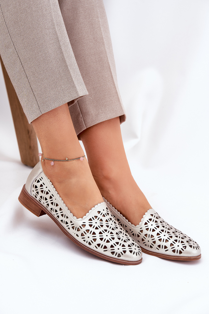 Шкіряні Перфоровані Жіночі Мокасини S.Barski LR51-646 Золоті