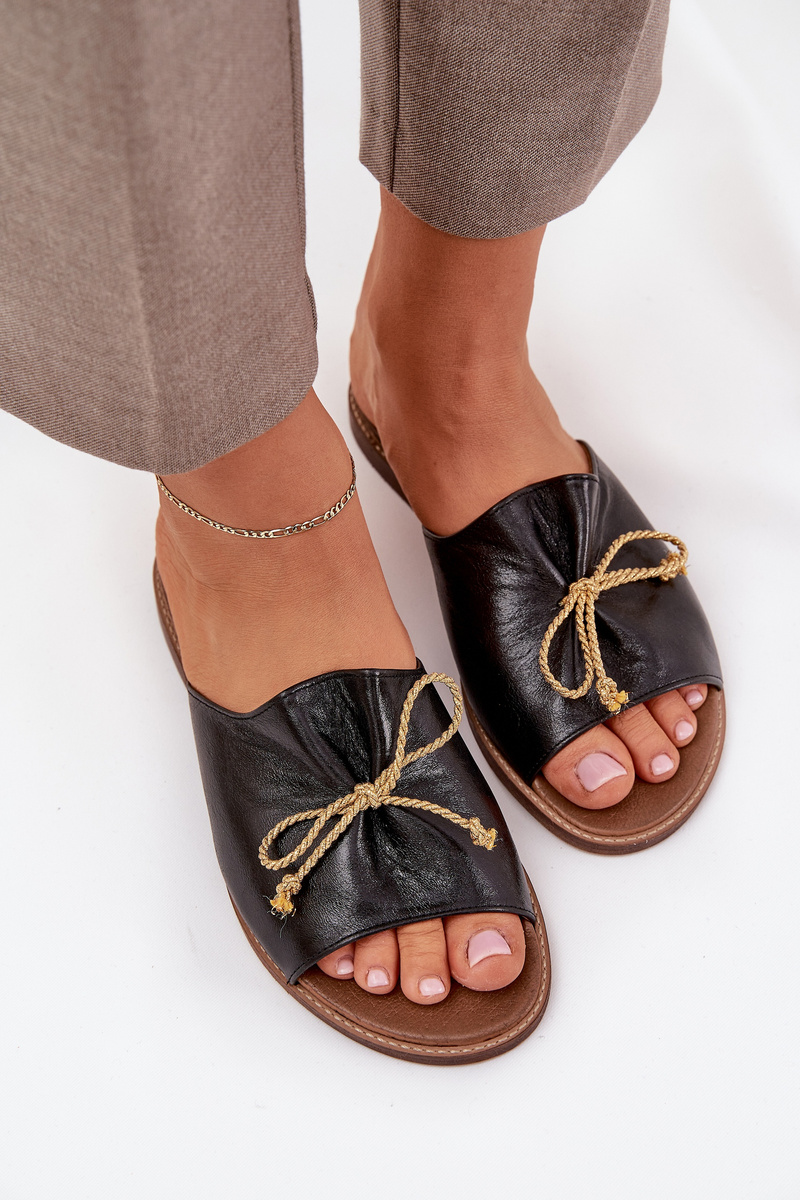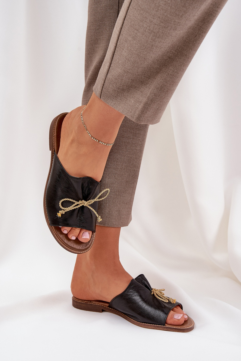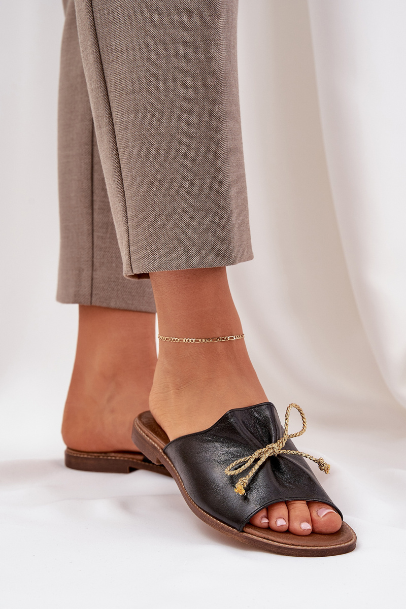 Шкіряні Плоскі Елегантні Сандалі З Бантиком Lewski 3572 Чорні