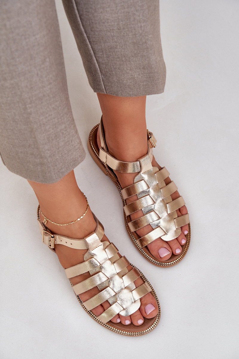 Шкіряні Сандалі На Плоскому Каблуці Zazoo 3686 Золоті