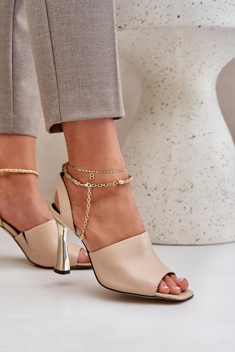Шкіряні Туфлі На Каблуках З Декоративним Браслетом CheBello 4440 Бежеві