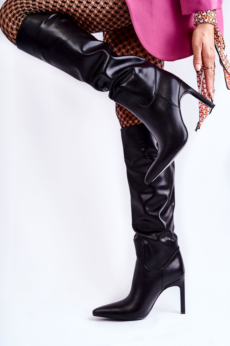 Шкіряні Чоботи На Шпильці Чорні Rissa