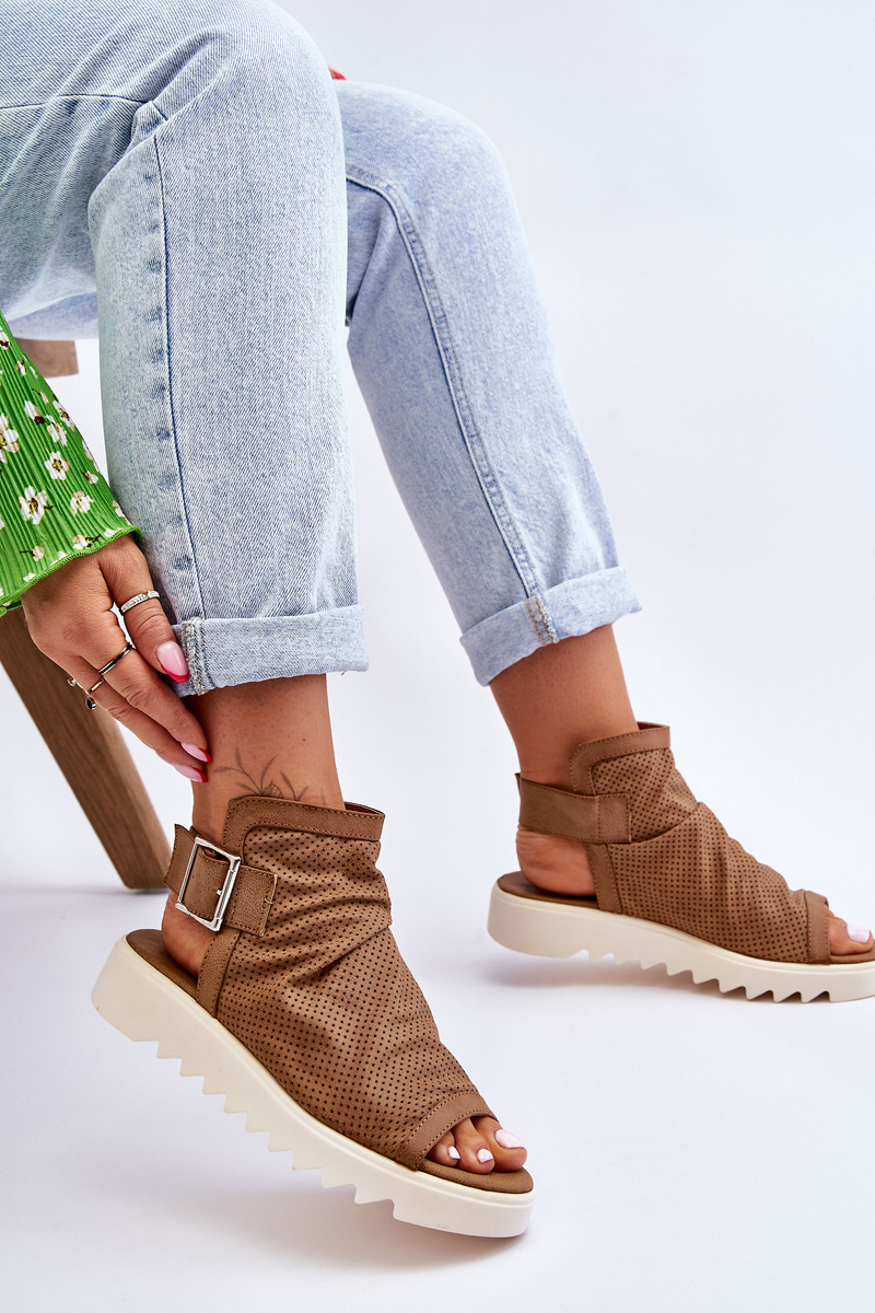 Шкіряні ажурні босоніжки верблюжа Аліма