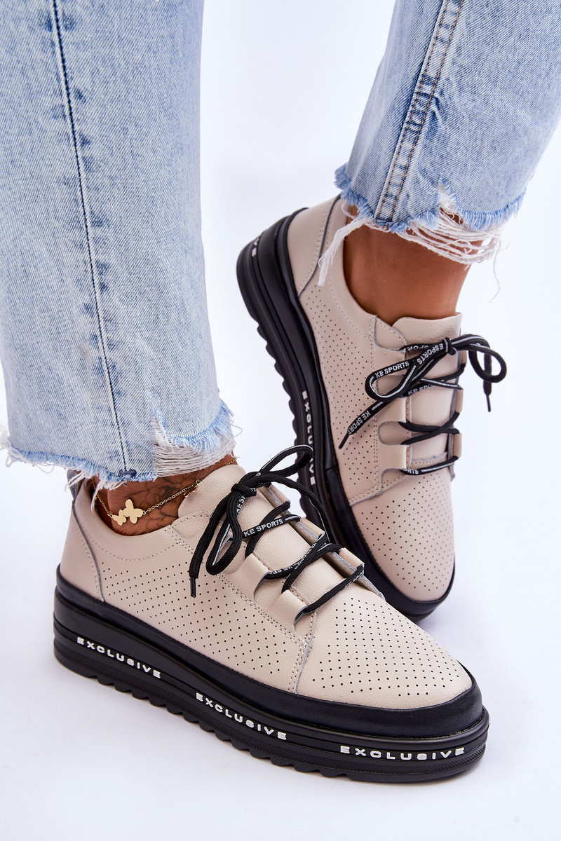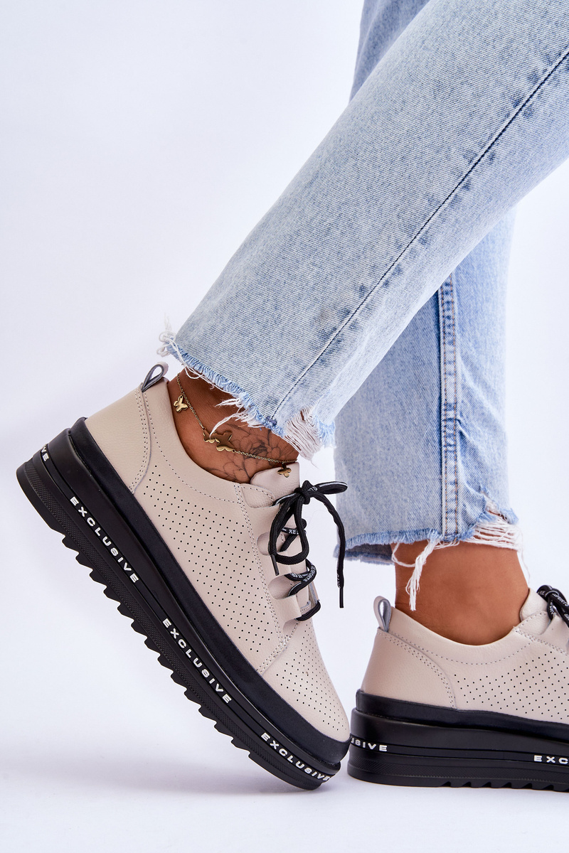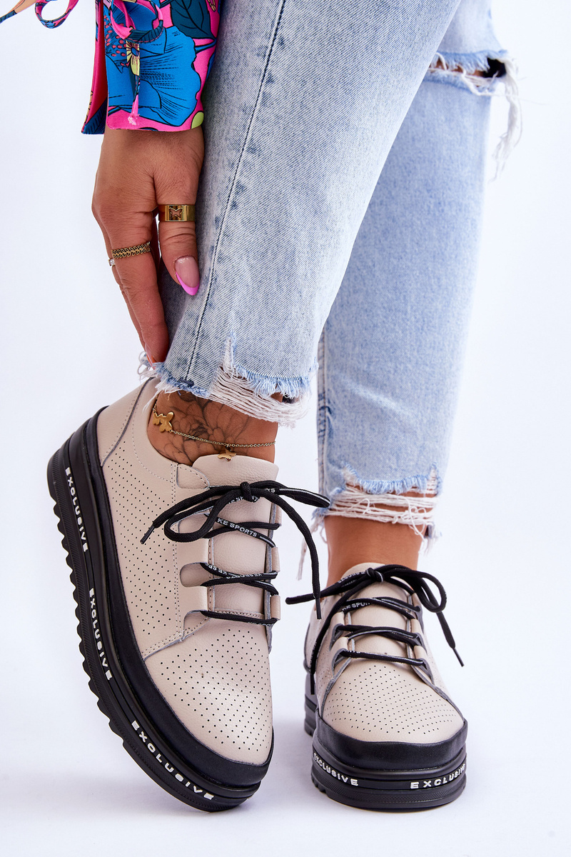 Зручне жіноче спортивне взуття виготовлене з натуральної шкіри. Дана модель має ажурний візерунок по всьому верху. Унікальна шнурівка виділяє цю модель серед іншого взуття. Кросівки були встановлені на ніжній платформі. Це взуття має устілку з натуральної шкіри. Обираючи розмір, орієнтуйтеся на таблицю розмірів.