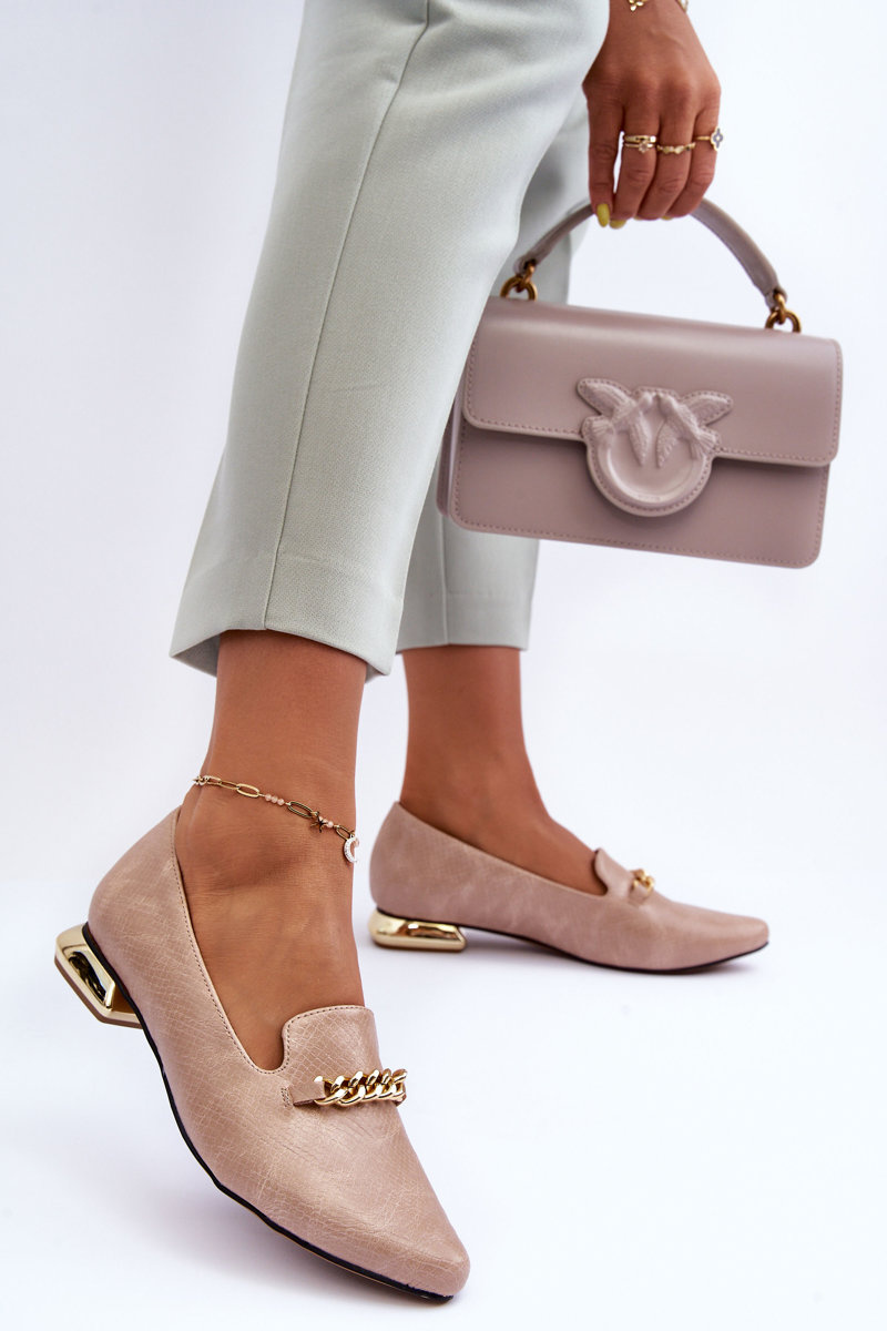 Шкіряні балетки з ланцюжком бежеві Lanez