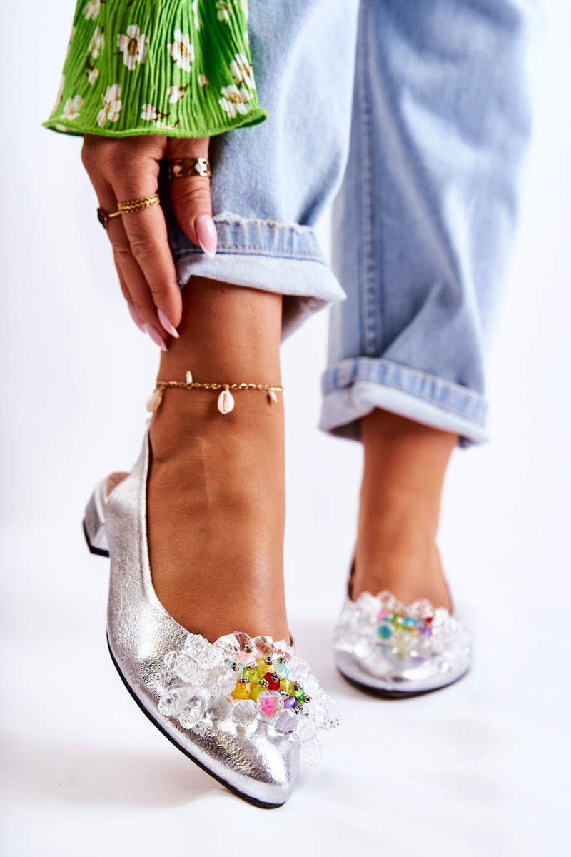 Шкіряні балетки на високих підборах з декором Silver Elena