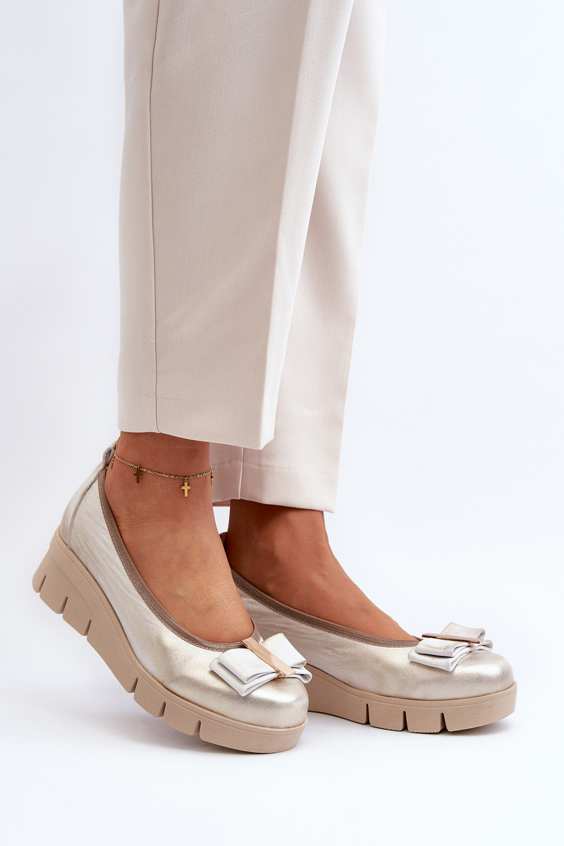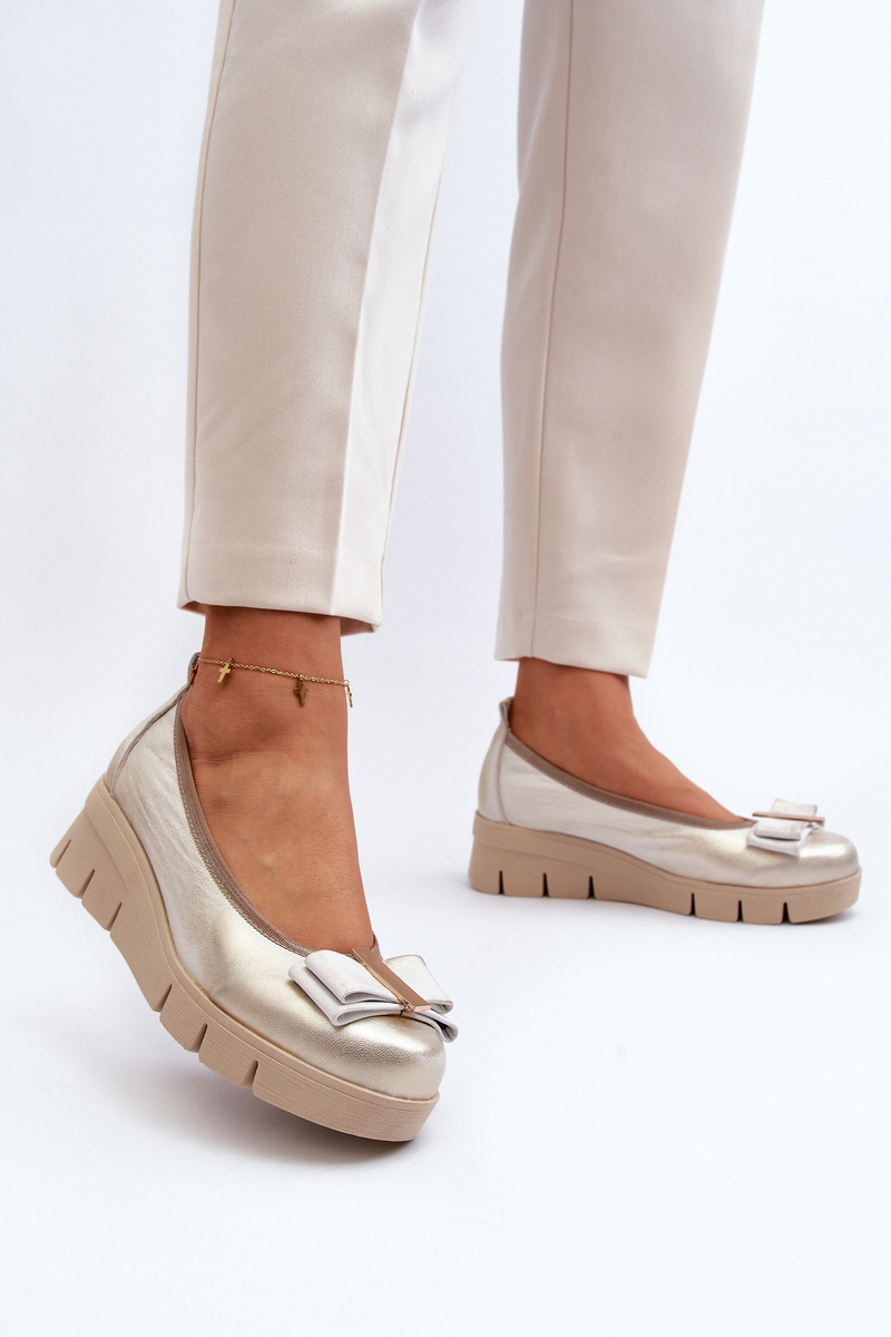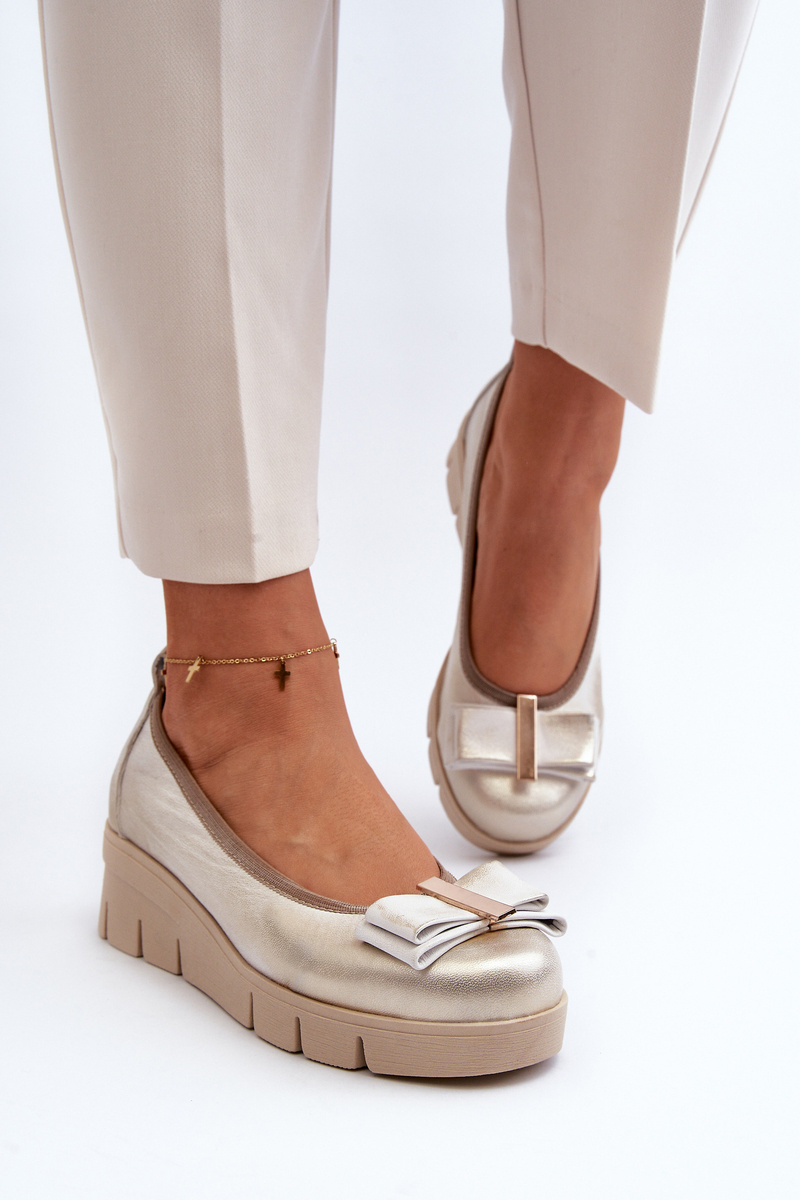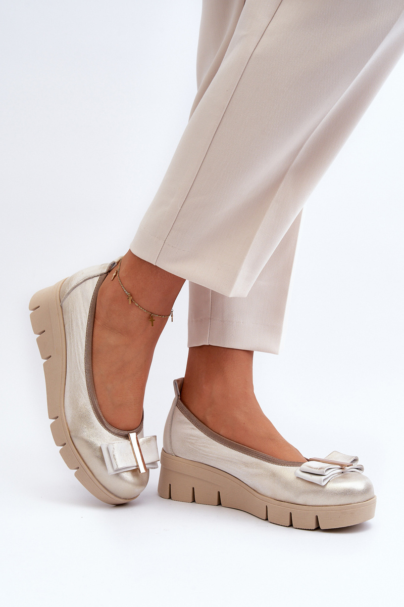 Шкіряні балетки на платформі з золотим декором Lewski 3384