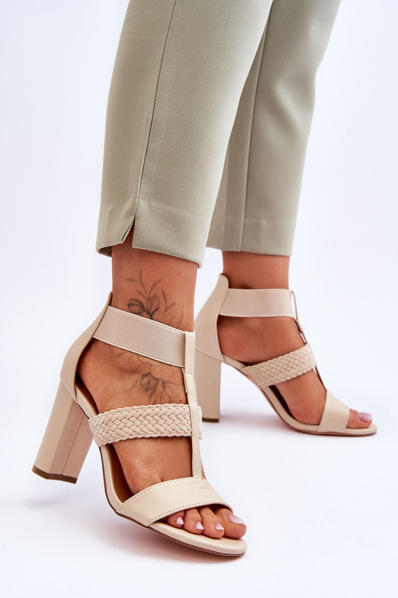 Шкіряні босоніжки Чоботи на високих підборах Бежево-Маррен