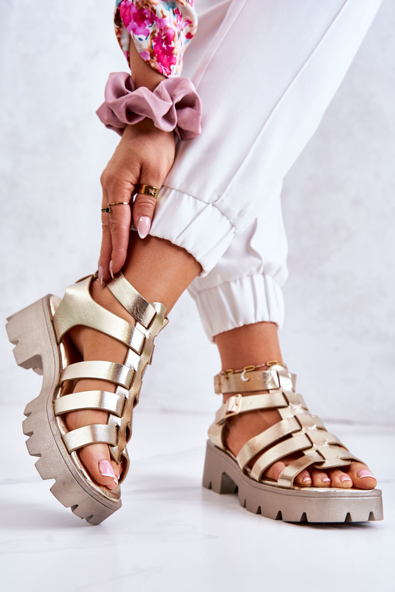 Шкіряні босоніжки з ремінцями золотого мінориту