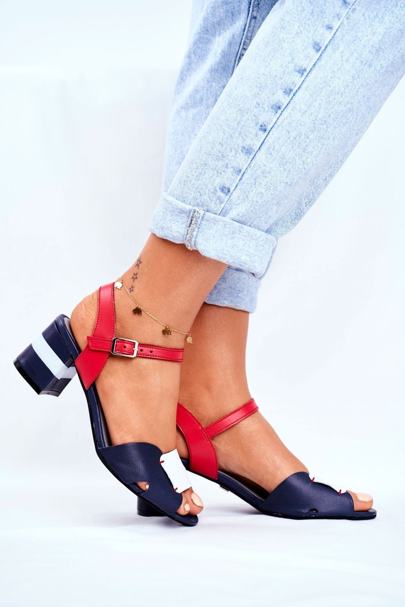 Шкіряні босоніжки на блочному каблуці Maciejka 04120-17 Темно-синій
