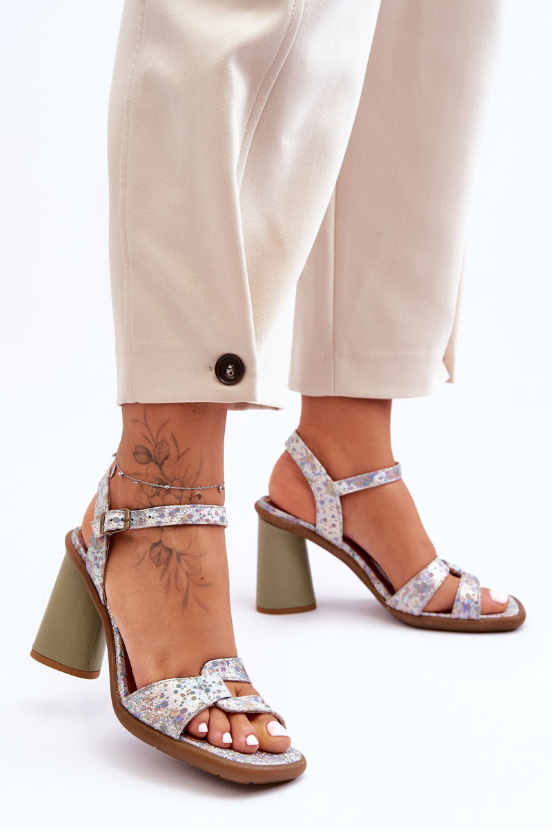 Шкіряні босоніжки на підборах Maciejka 06029-24 біло-зелені