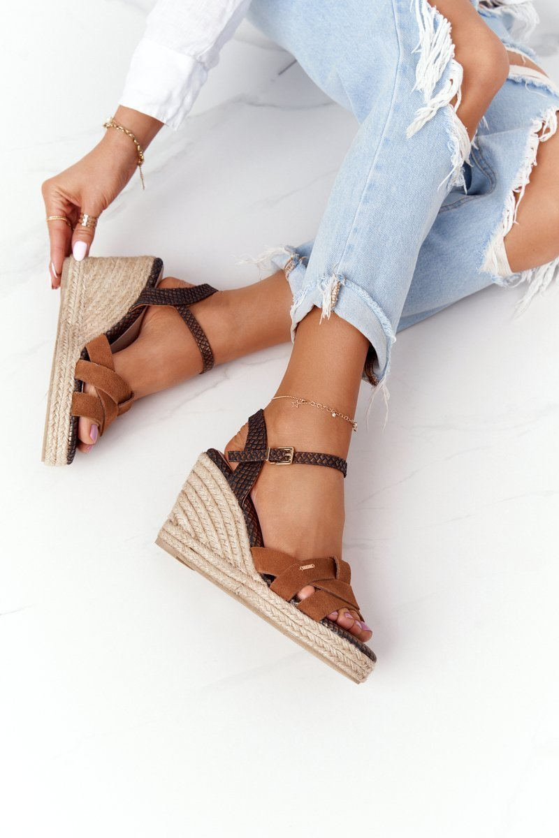 Шкіряні босоніжки на танкетці Big Star HH274377 Коричневий