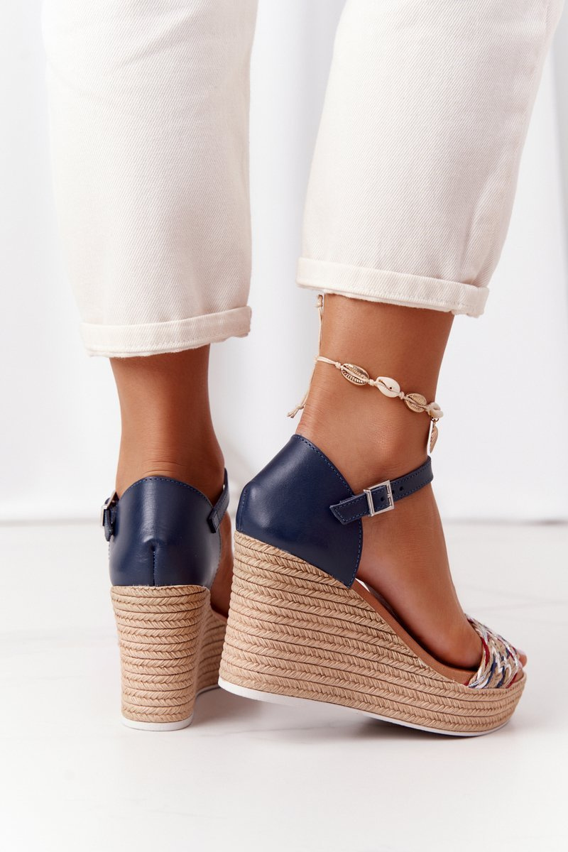 Шкіряні босоніжки на танкетці Maciejka L4869-17 Темно-сині