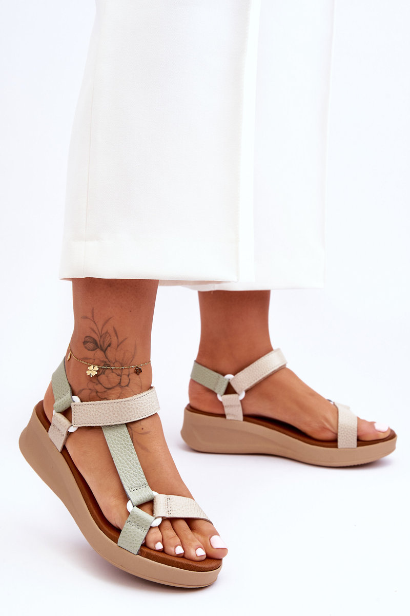 Шкіряні босоніжки Maciejka L5186-09 Зелено-бежевий