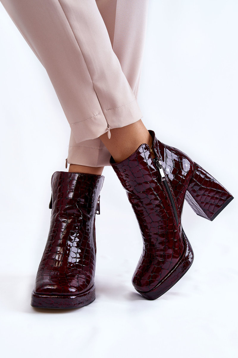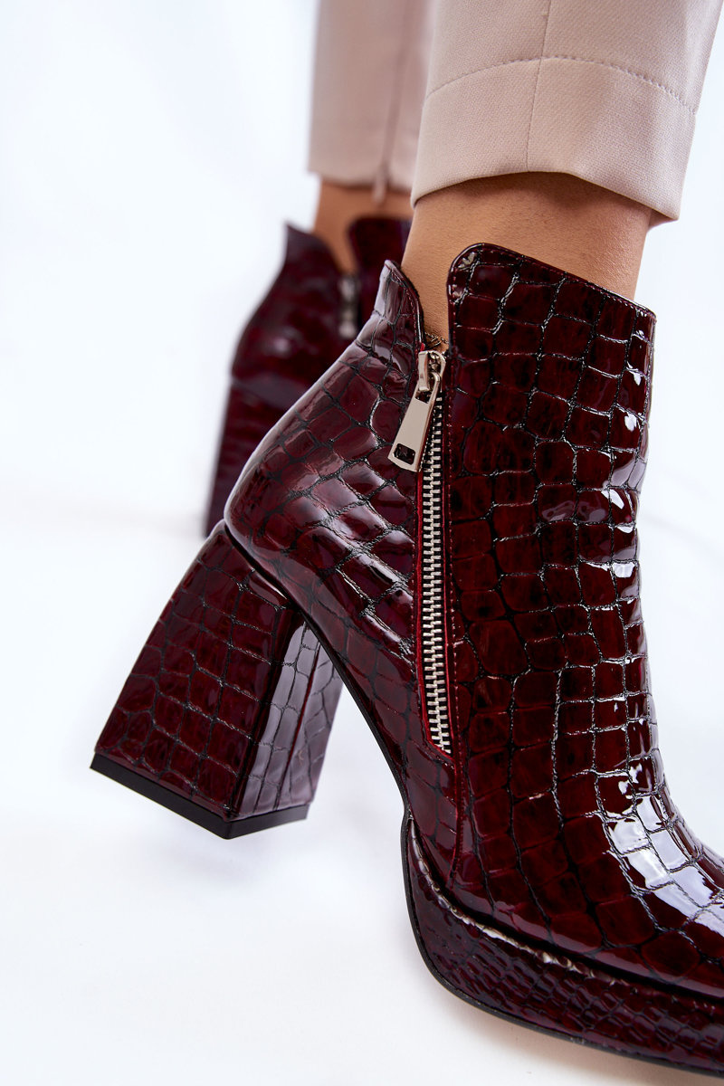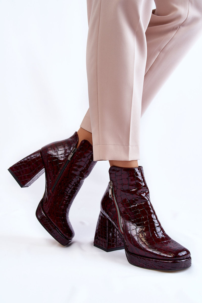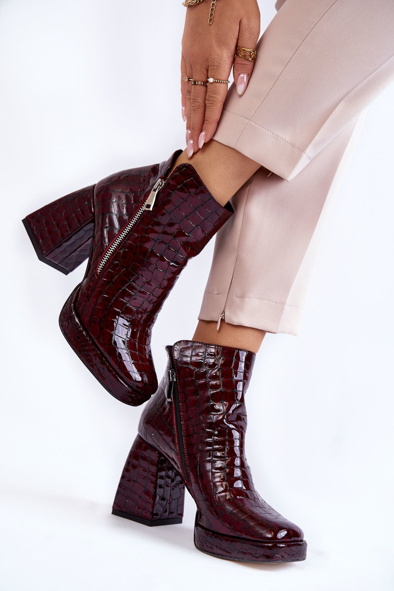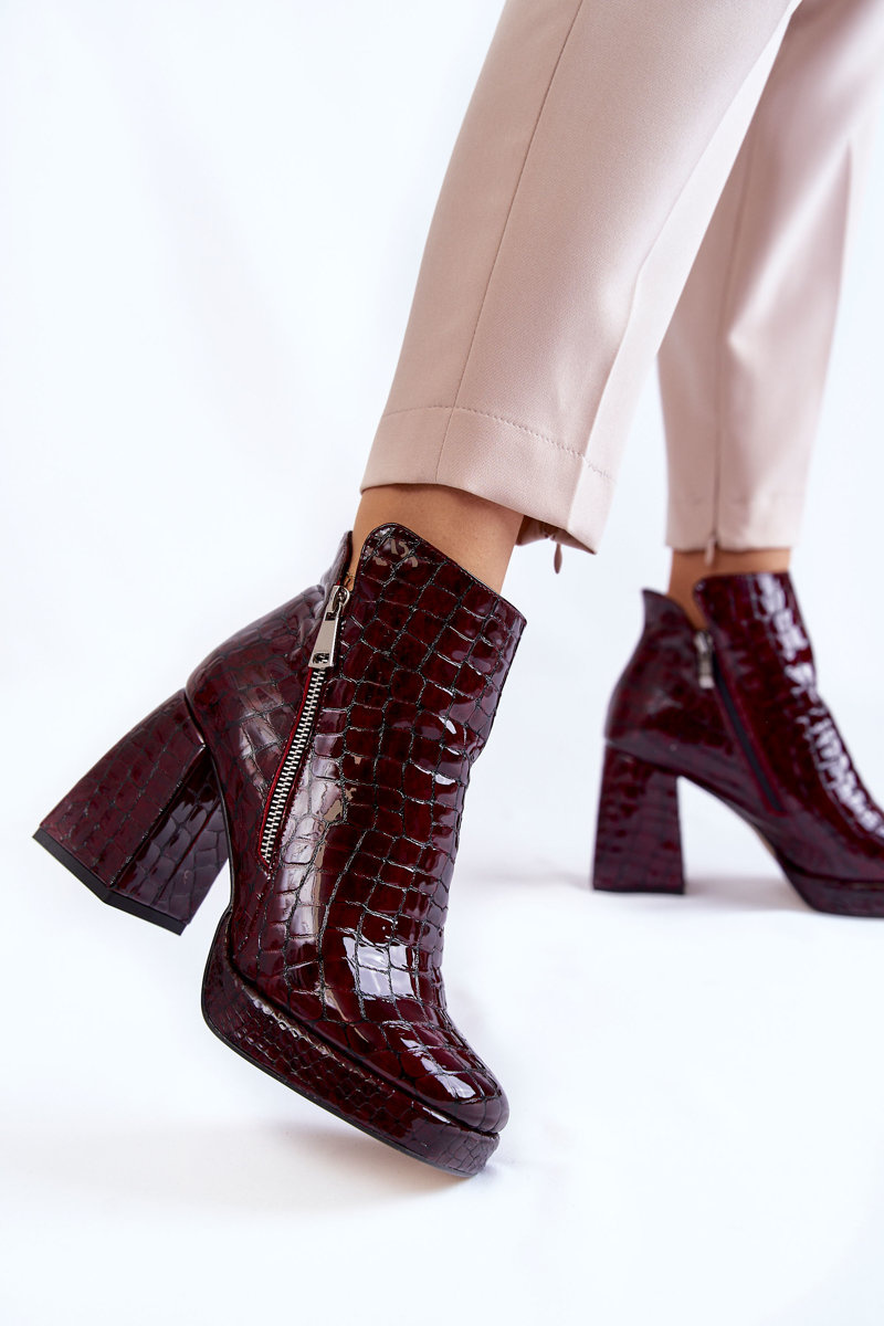 Шкіряні ботильйони з крокодиловим малюнком бордового кольору Alienore