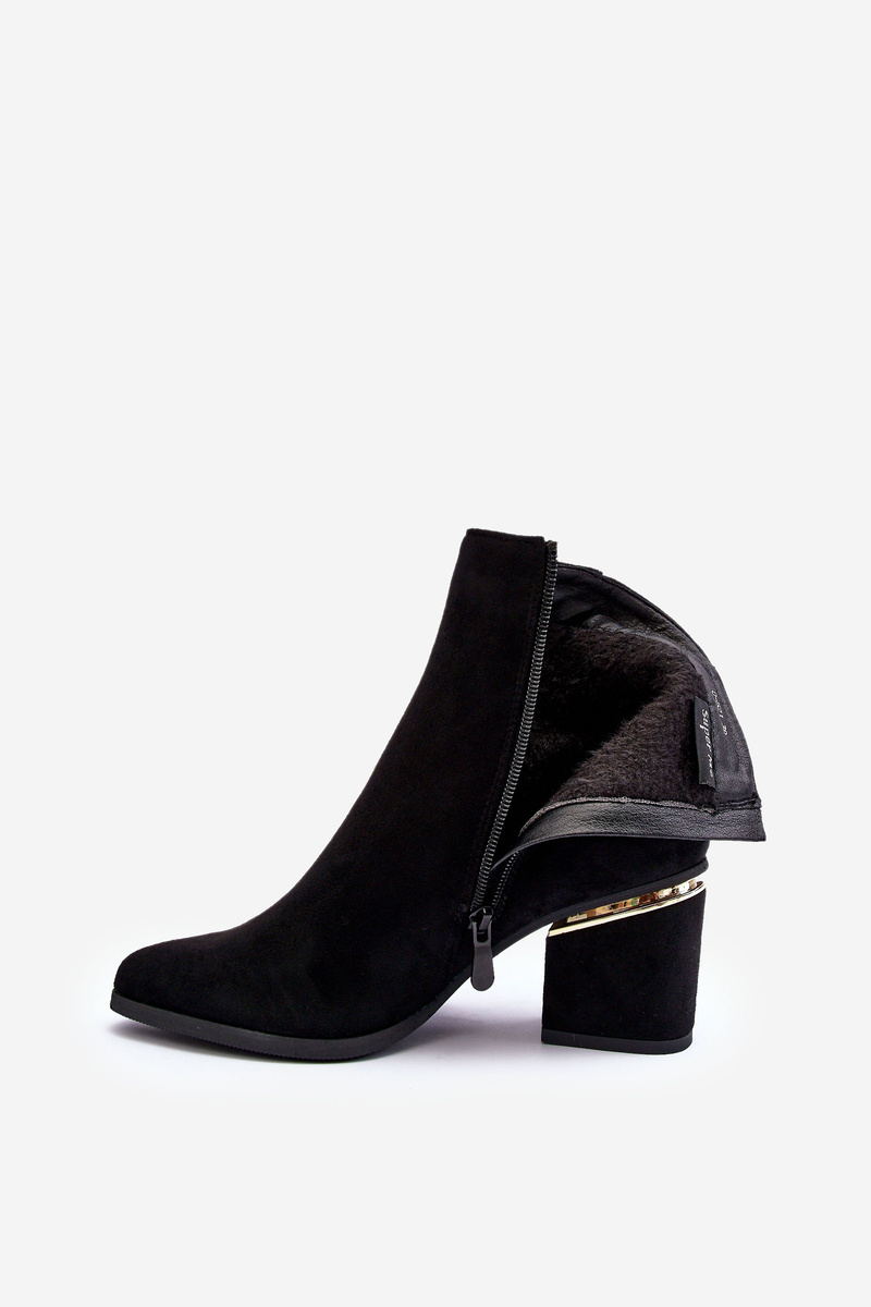 Ці елегантні ботильйони виготовлені з приємної на дотик еко-замші. Комплект на каблуці з дзеркальним елементом. Зверху коштовний орнамент. Модель застібається на блискавку. Носок посилений, внутрішня частина обшита взуттєвим флісом. При виборі розміру орієнтуйтеся на таблицю розмірів.