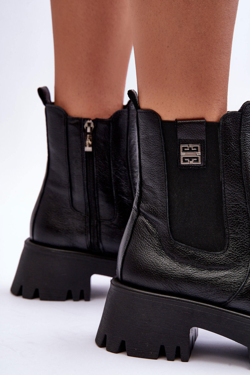 Шкіряні ботильйони на масивній платформі Чорні Lisencca